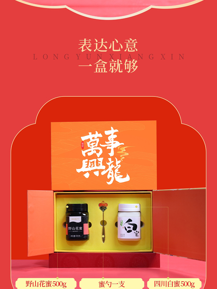 【龙韵向欣】等蜂来龙年生效专享礼盒 1000g蜂蜜礼盒(500g野山花蜜+500g四川白蜜)