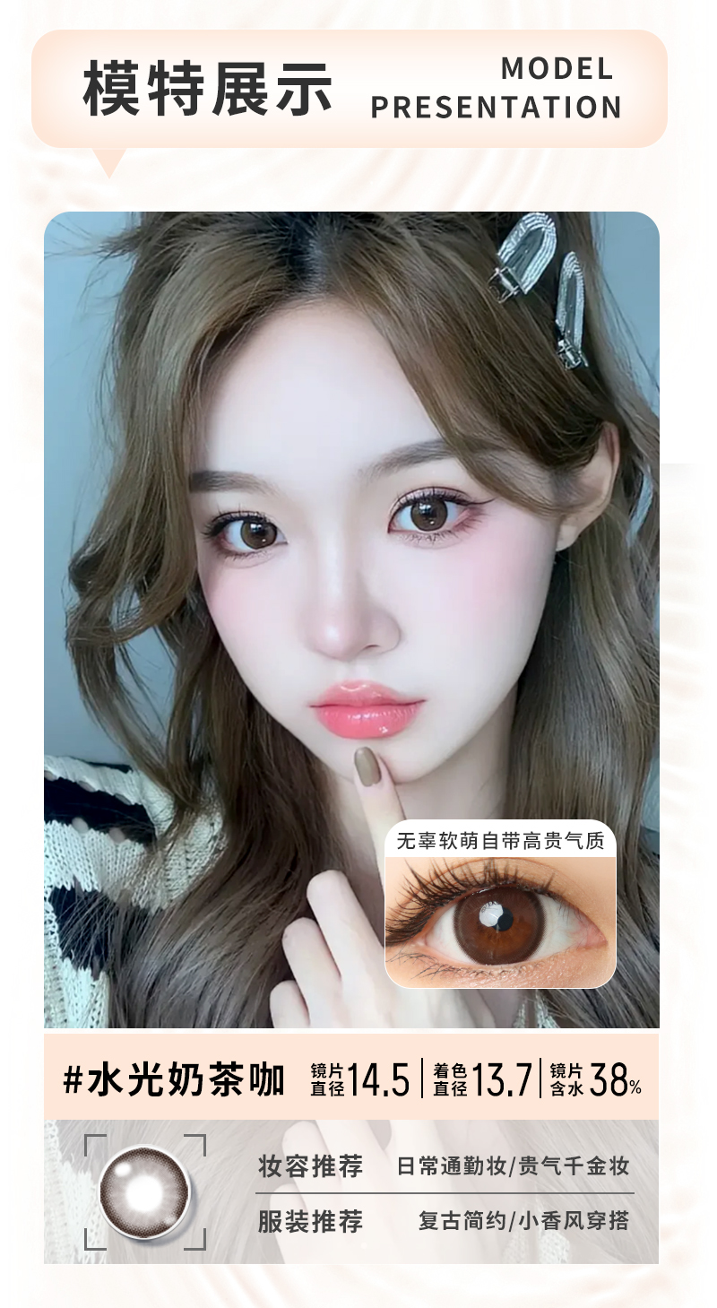 复古芭比 清透杏色天花板 巨显白半年抛美瞳一片装(1副拍2,YB11)