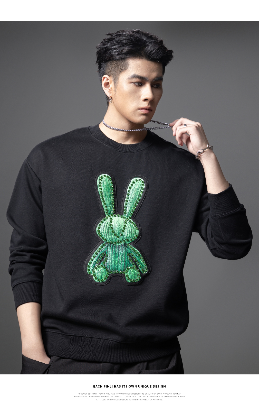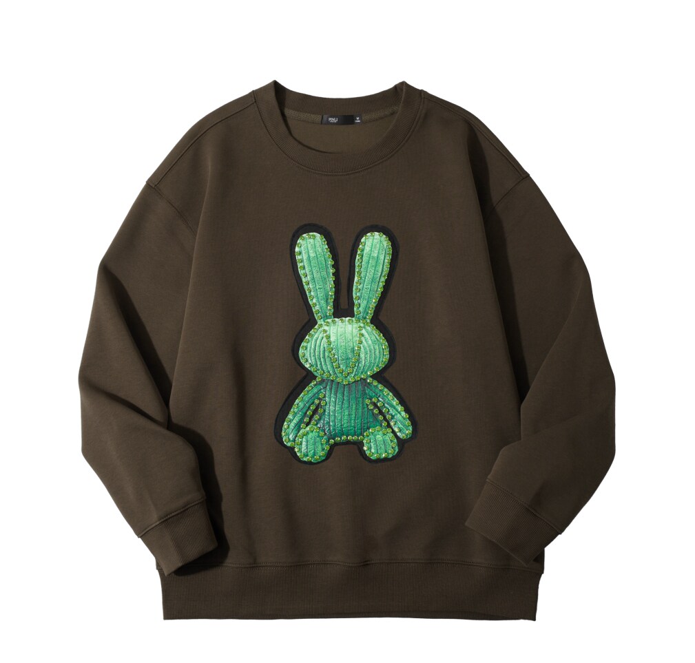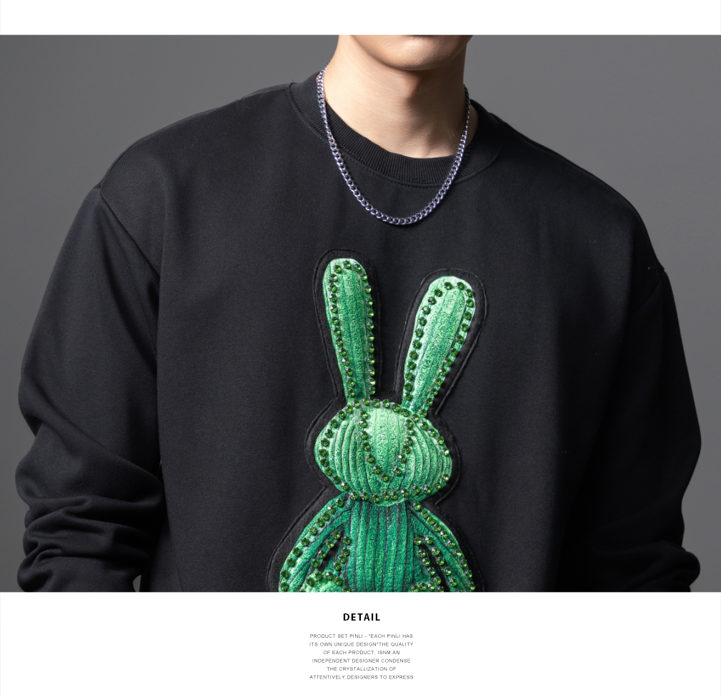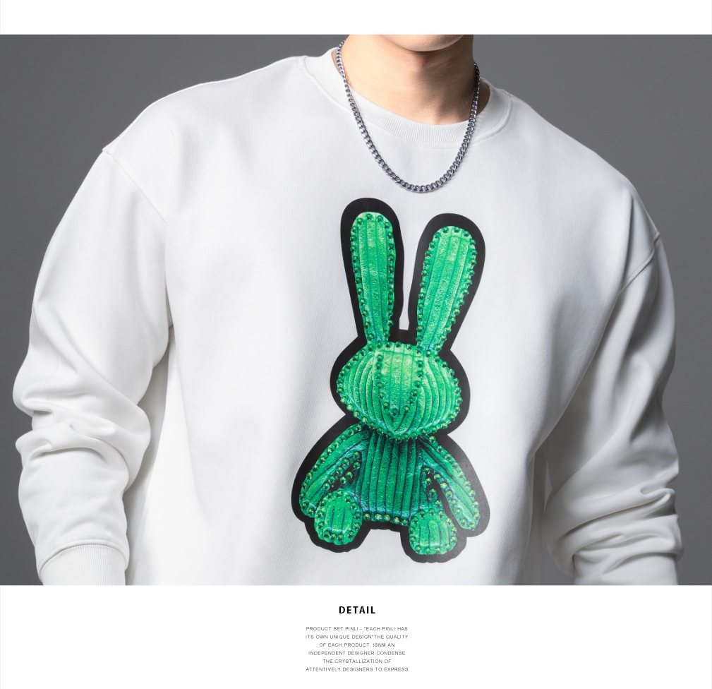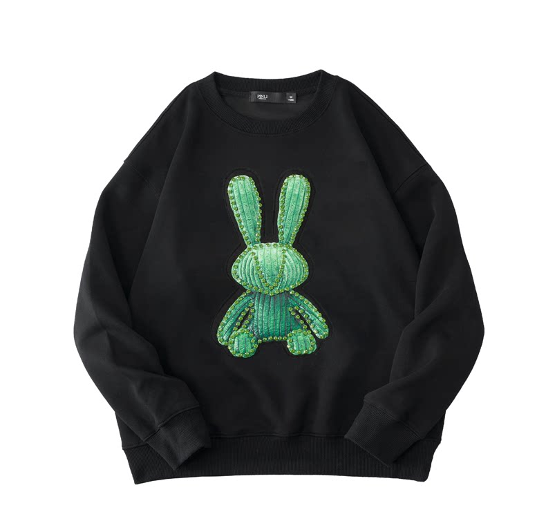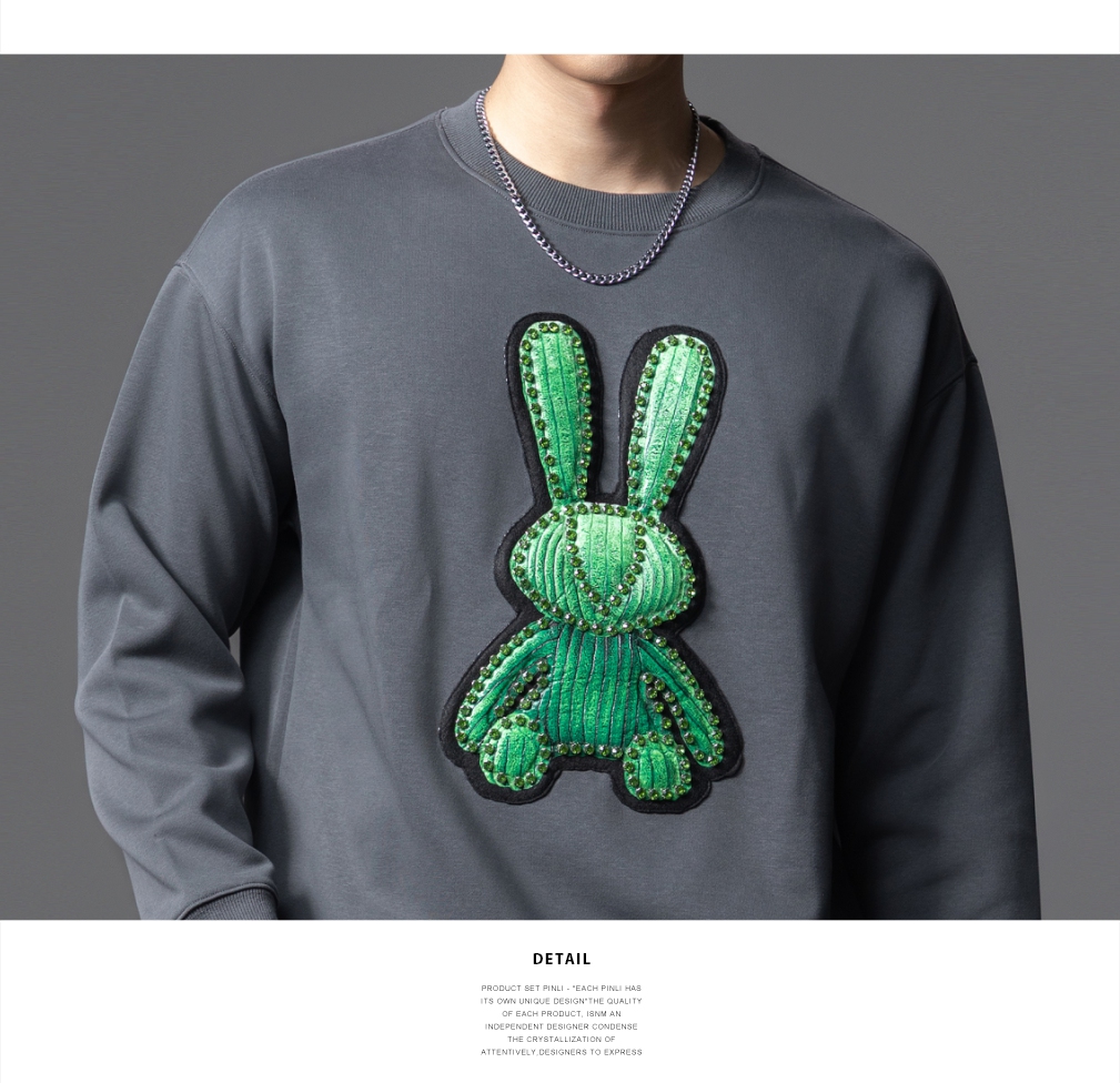 PINLI品立2025秋季新款发泡烫画男士卫衣手工钉钻珠套头潮牌上衣BG253109005