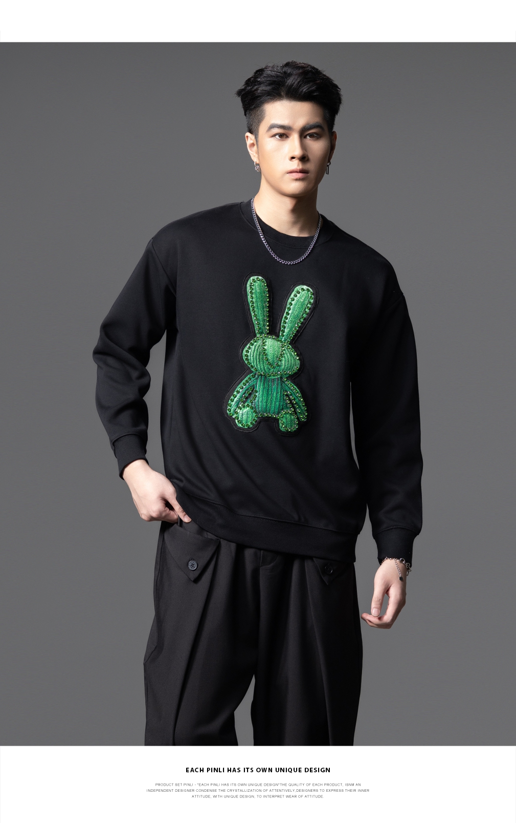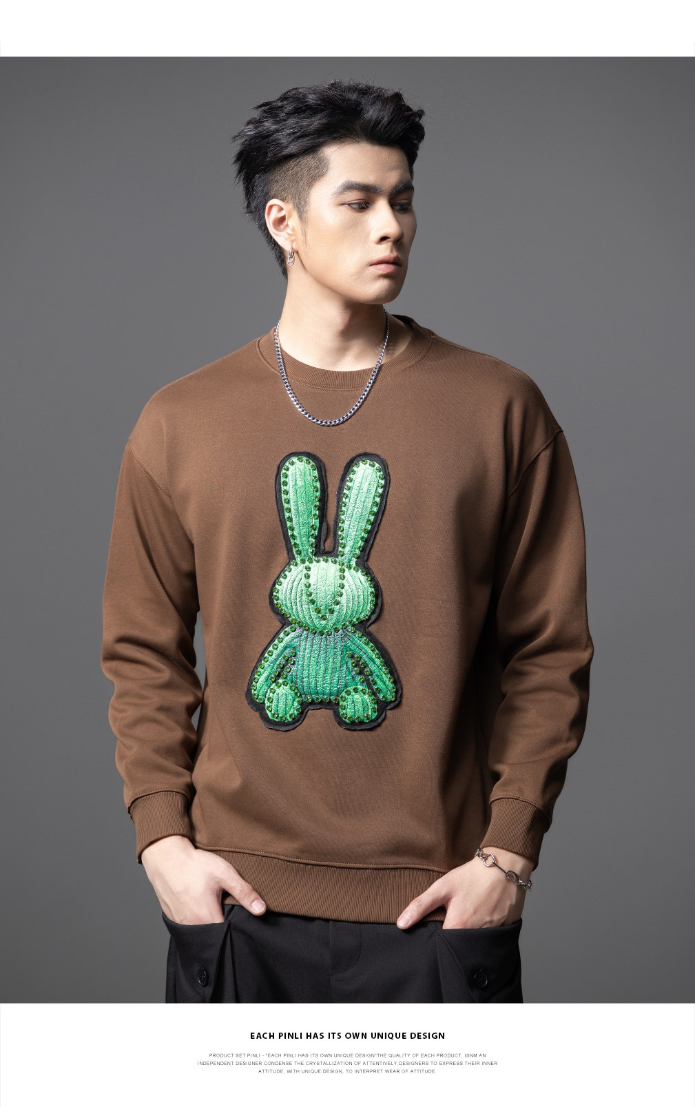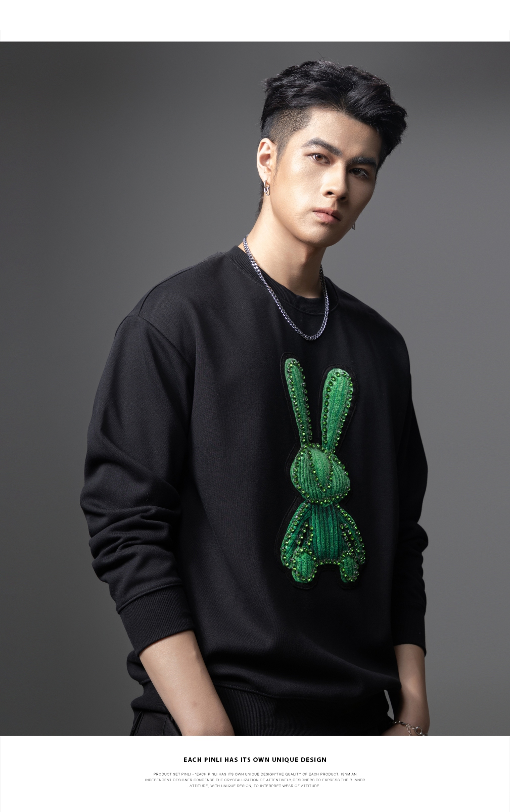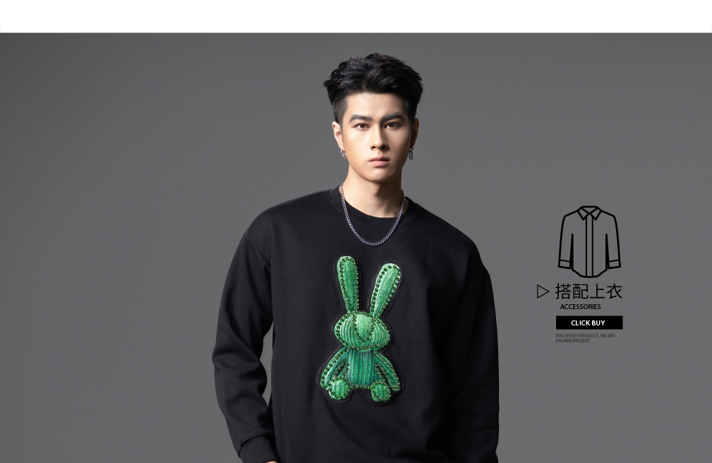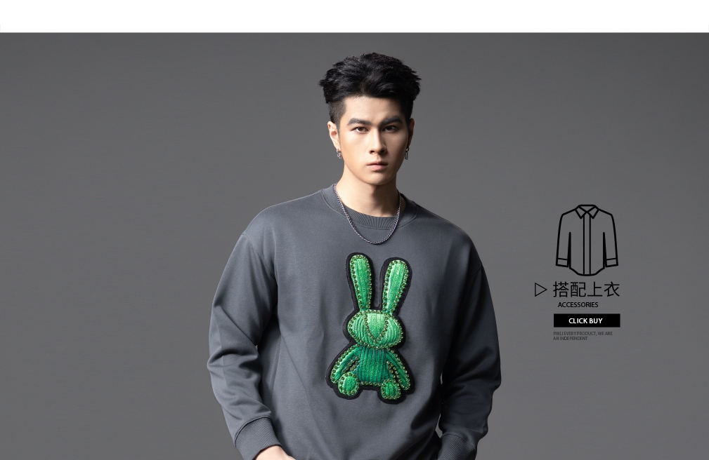 PINLI品立2025秋季新款发泡烫画男士卫衣手工钉钻珠套头潮牌上衣BG253109005