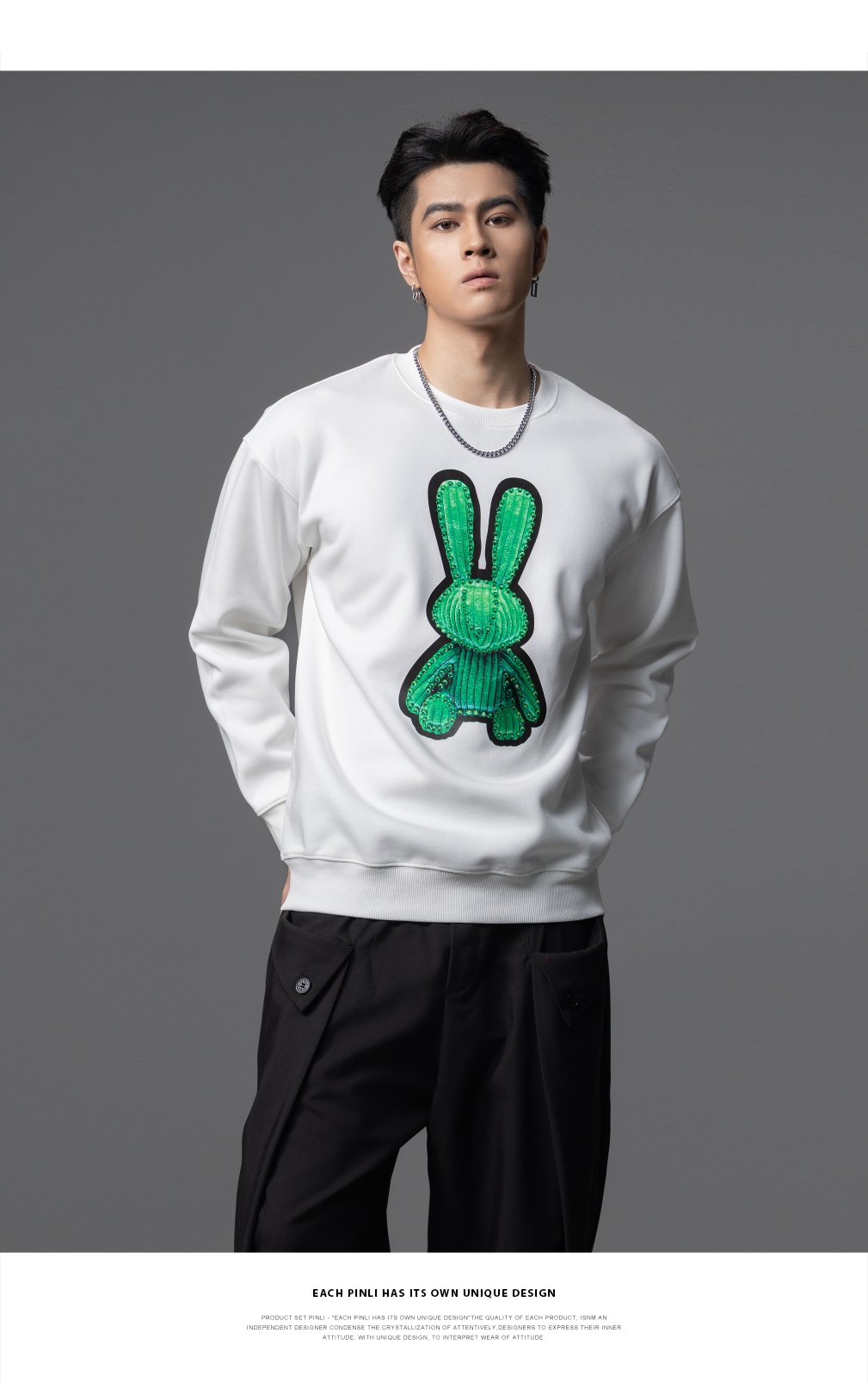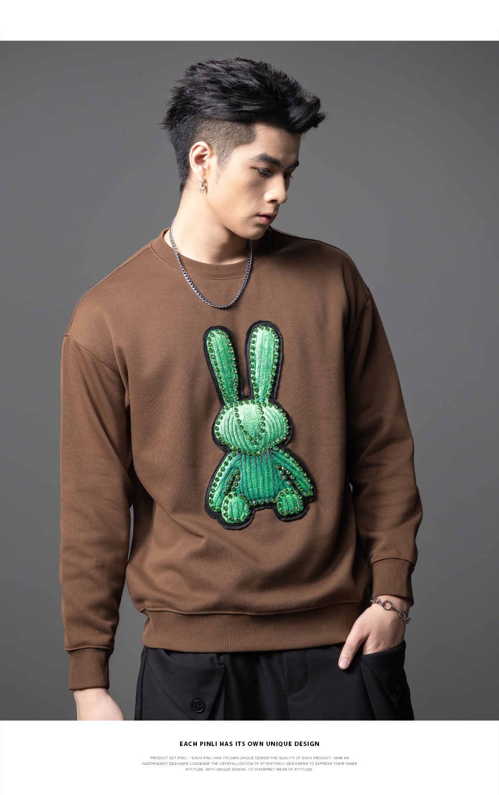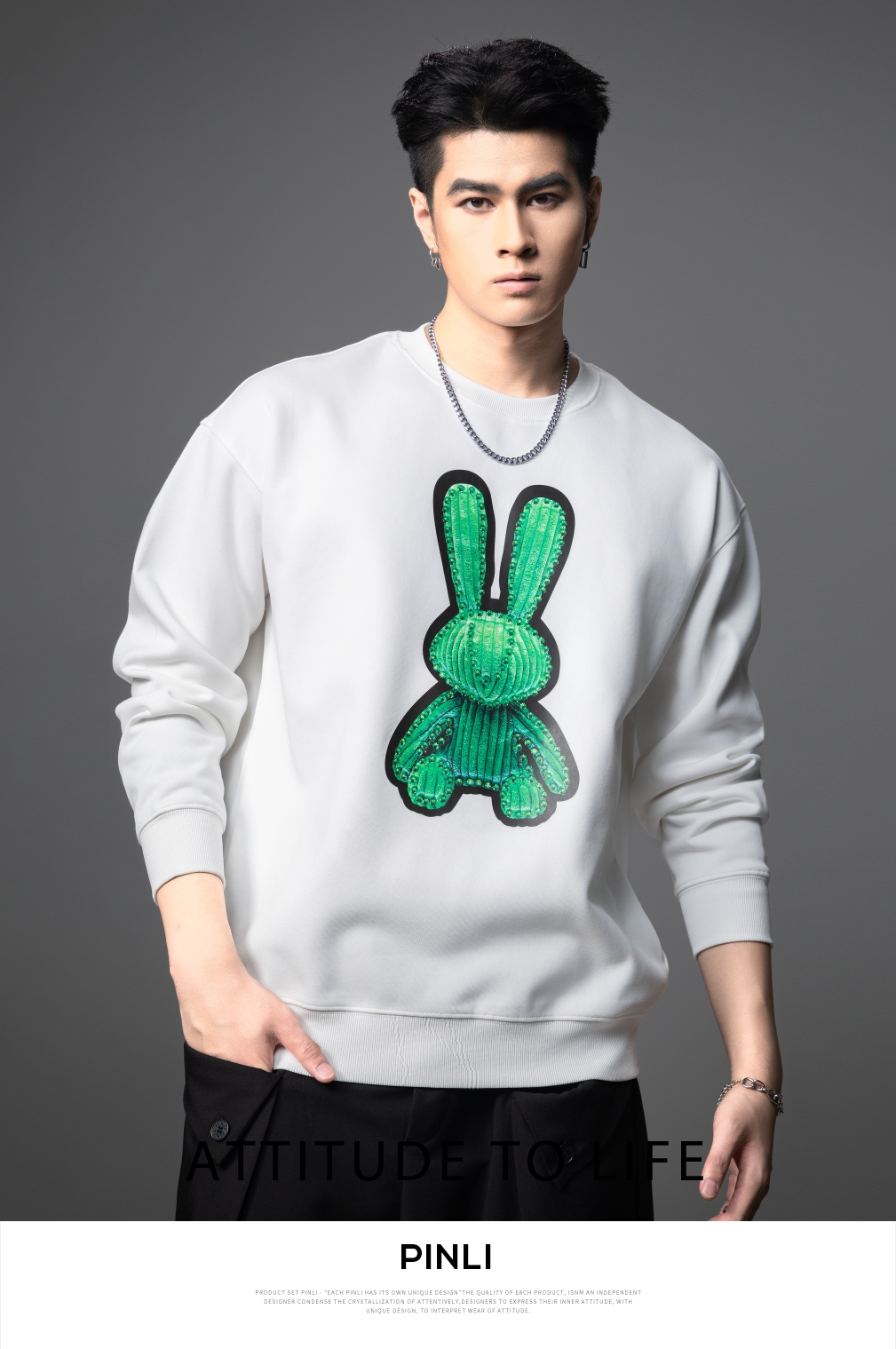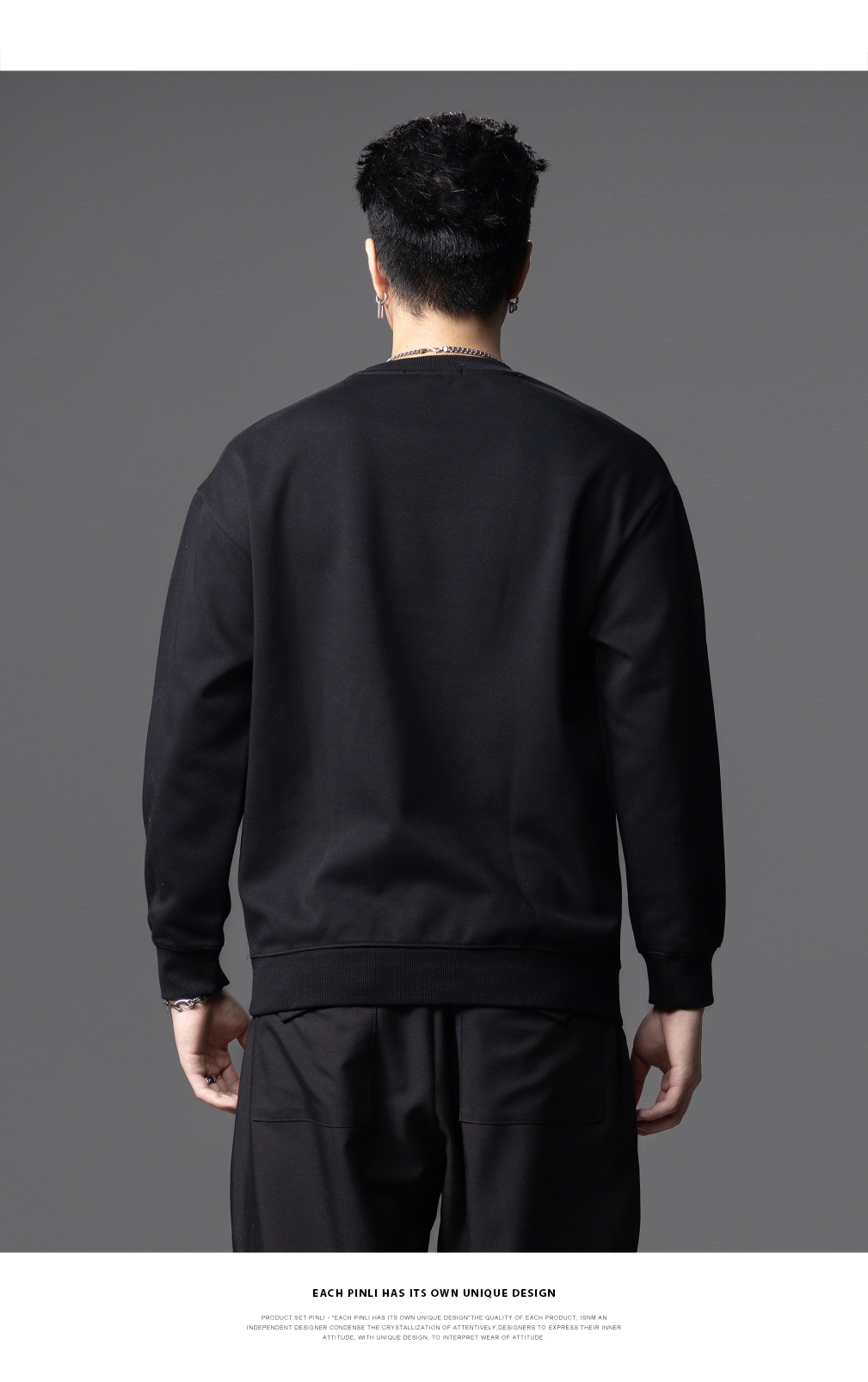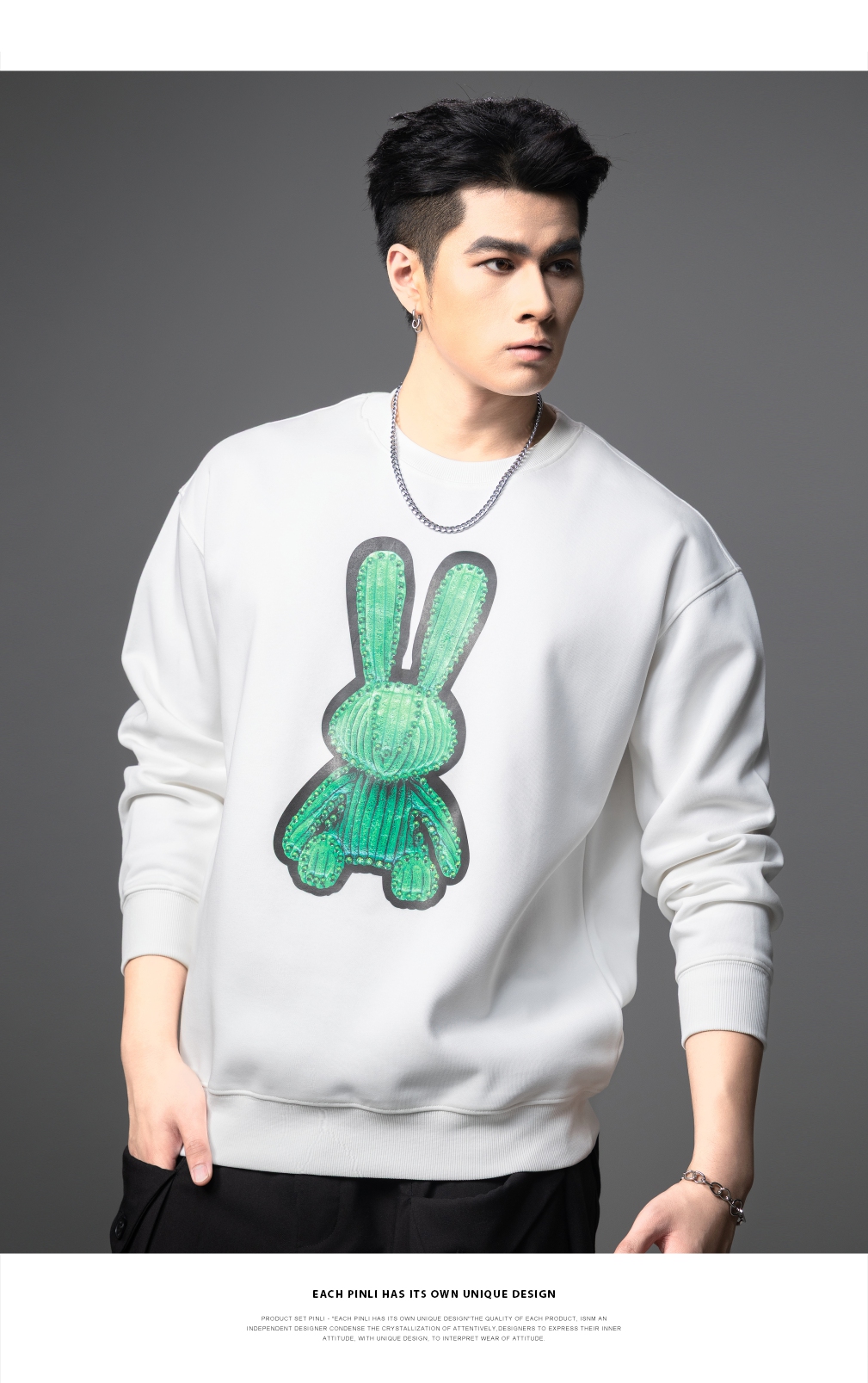 PINLI品立2025秋季新款发泡烫画男士卫衣手工钉钻珠套头潮牌上衣BG253109005