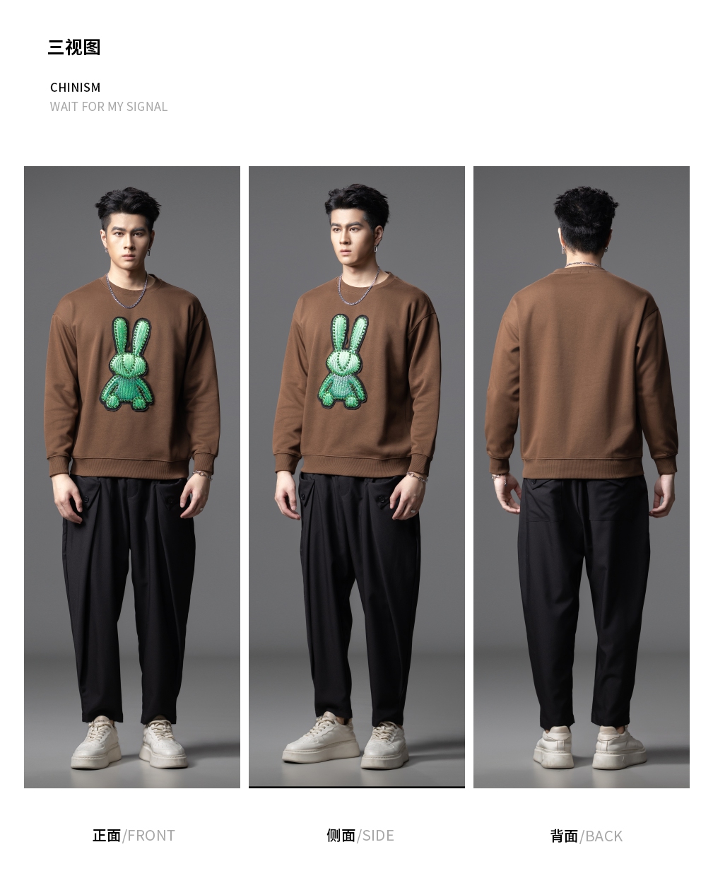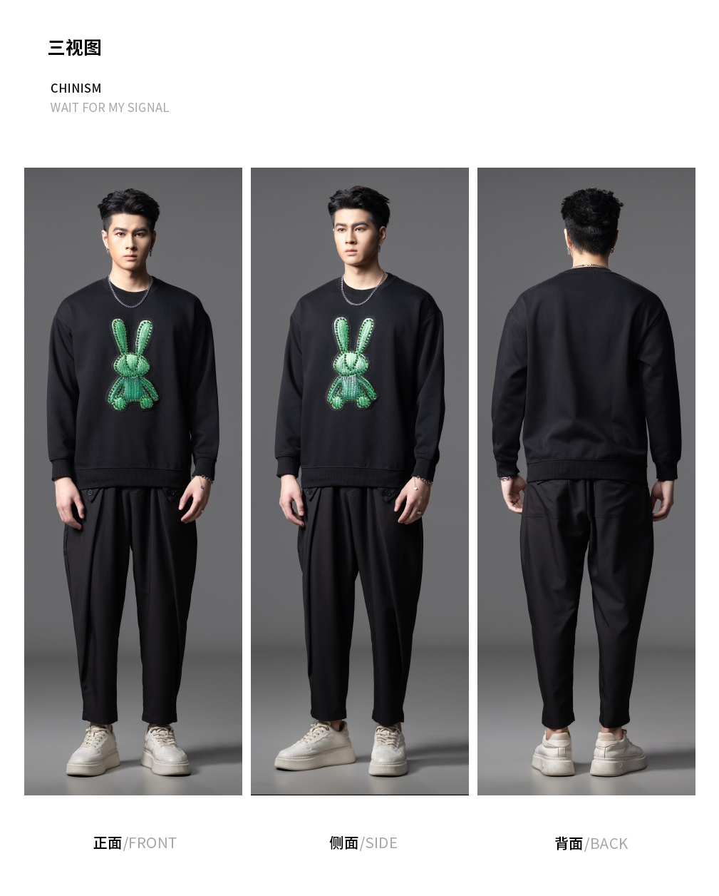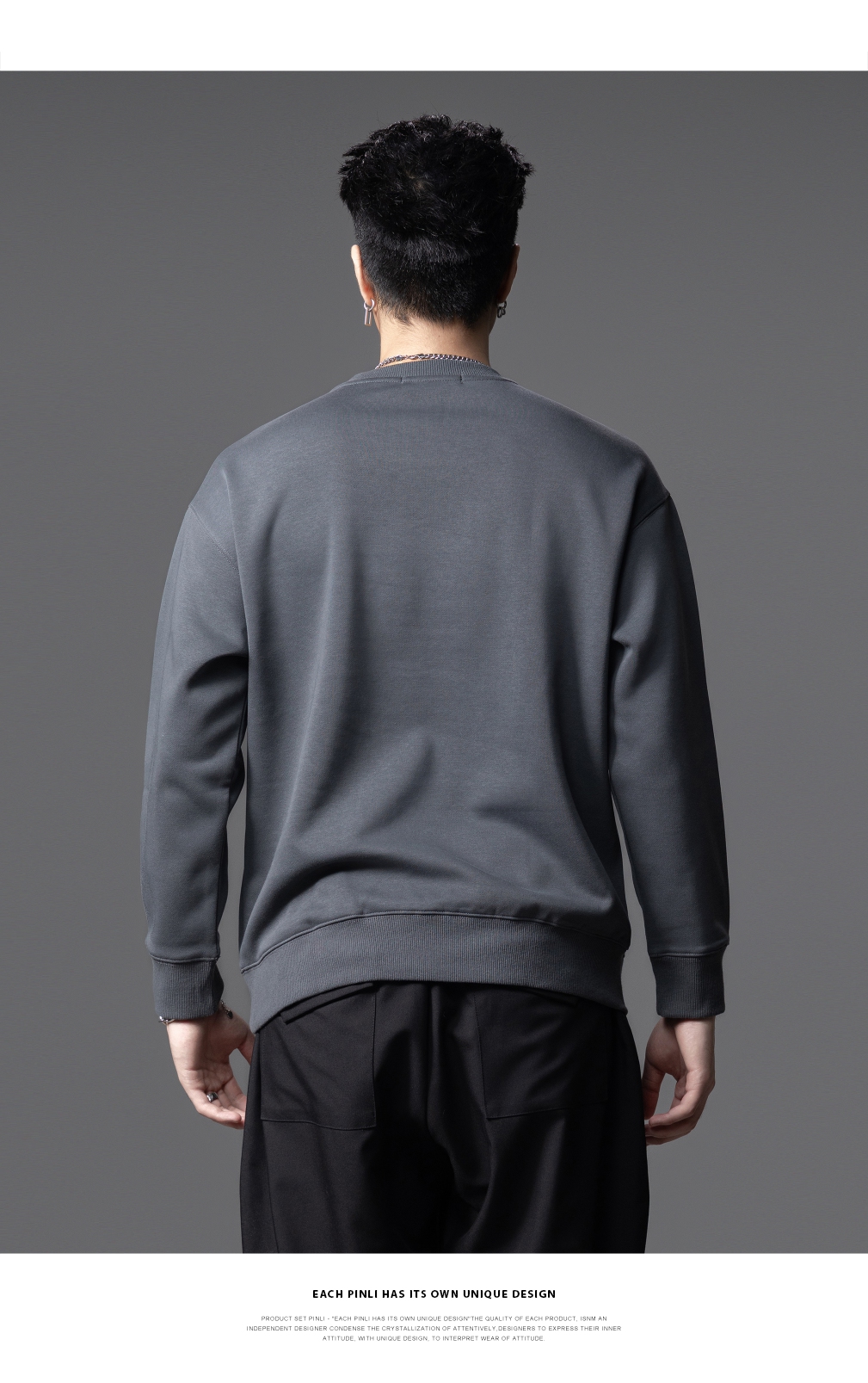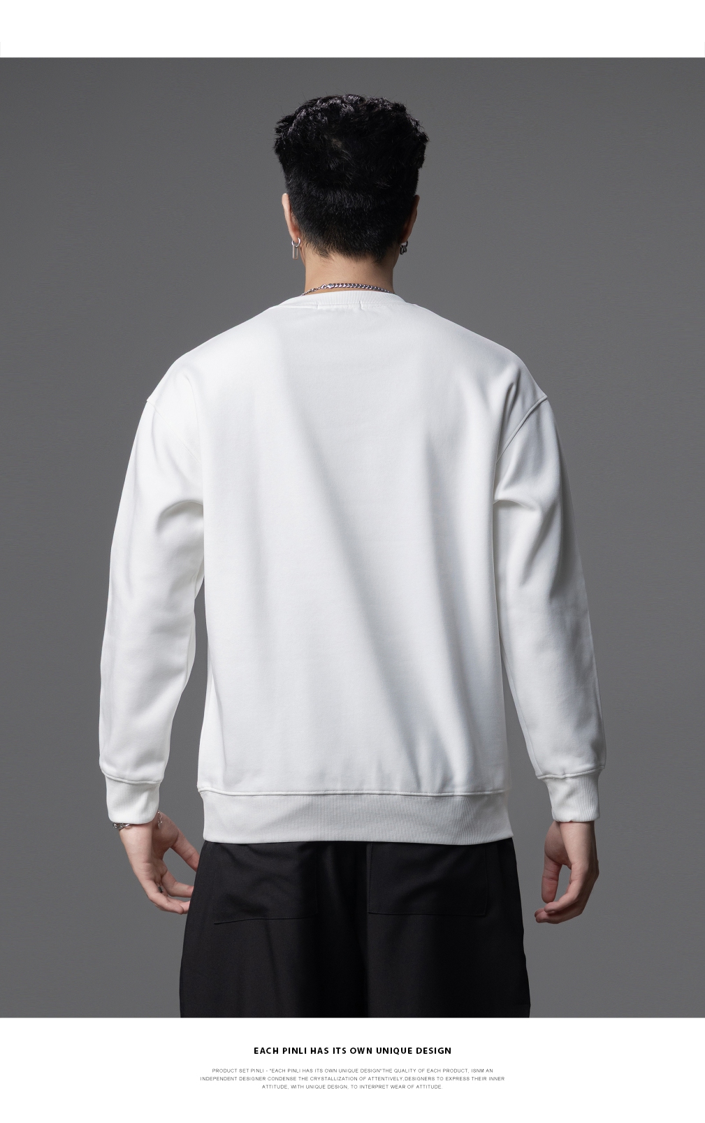 PINLI品立2025秋季新款发泡烫画男士卫衣手工钉钻珠套头潮牌上衣BG253109005