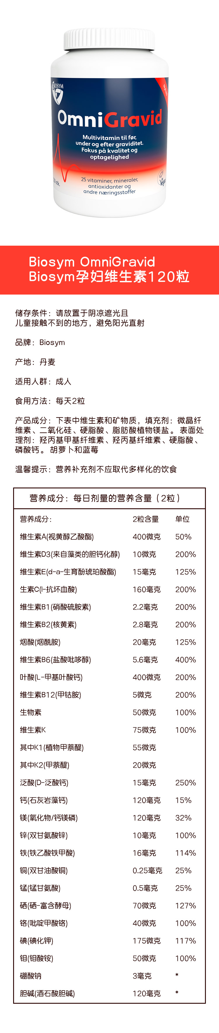 [保税区-FX]Biosym孕妇维生素120粒. Biosym OmniGravid 120tab.