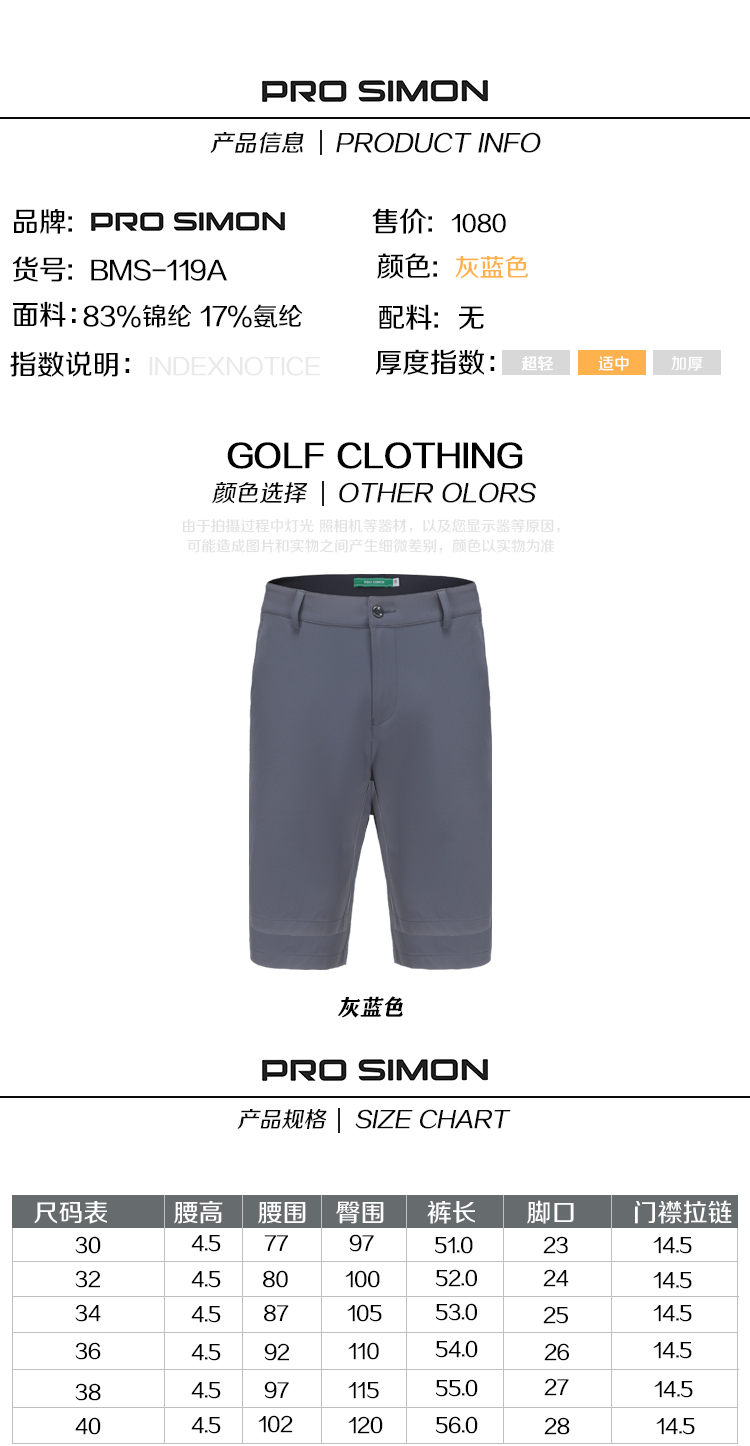 BMS-119A(PROSIMON高尔夫男款夏季轻薄透气弹力运动短裤)