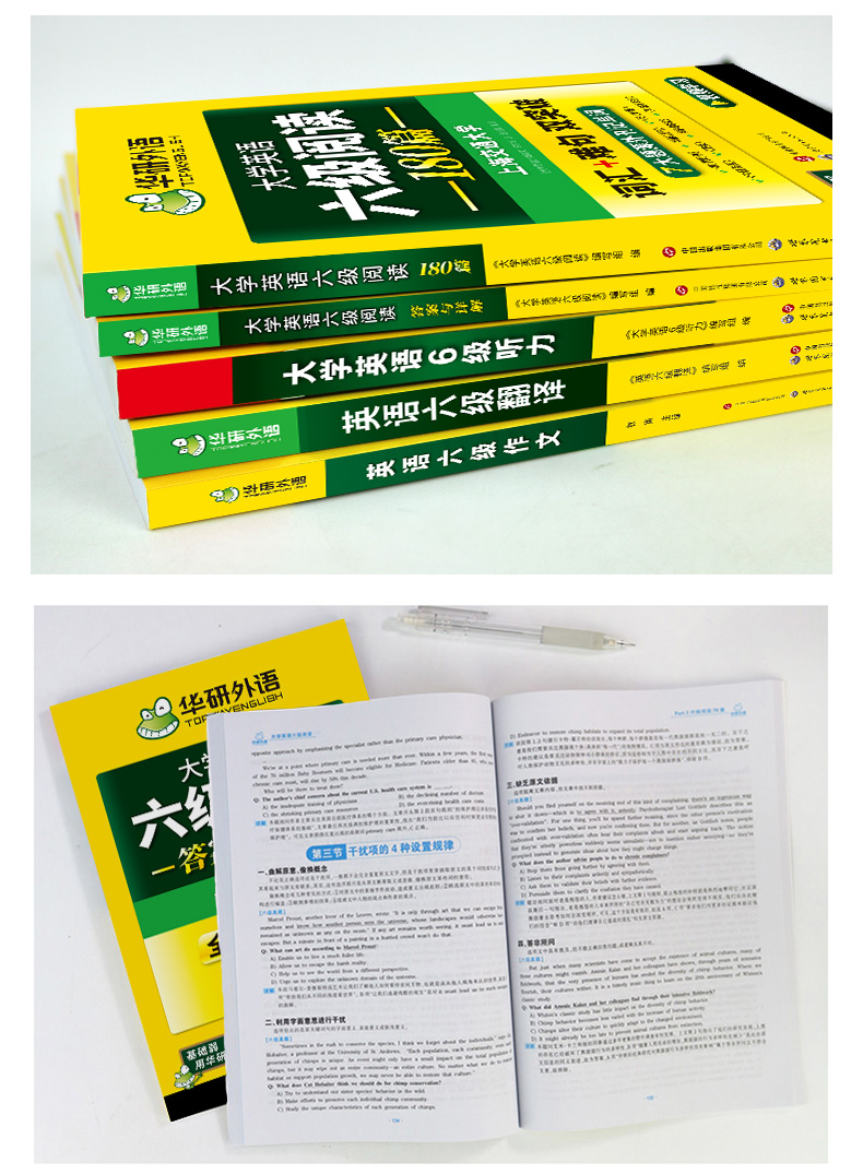 1.大学英语六级阅读180篇,两册装,解析单独成册,方便对照学习;