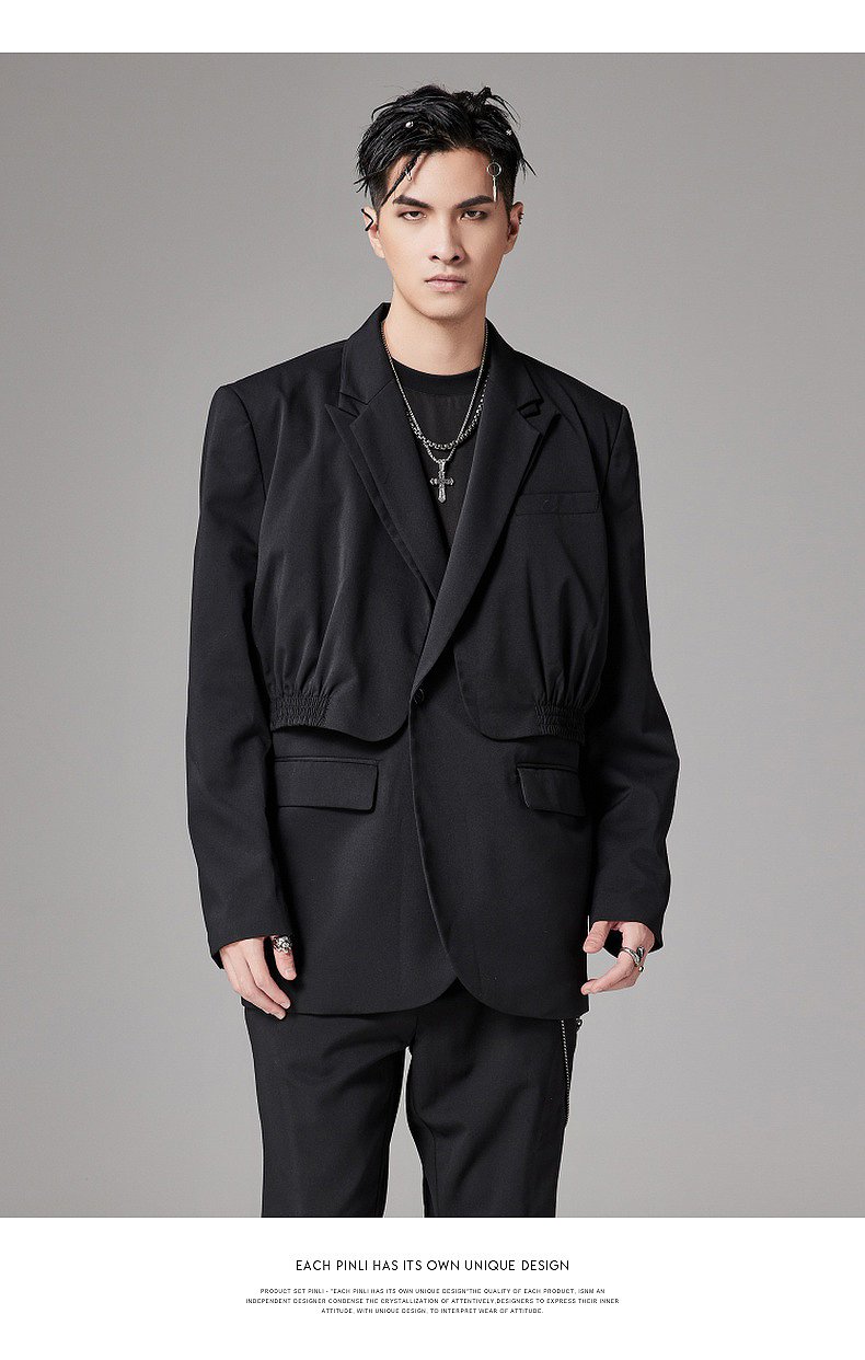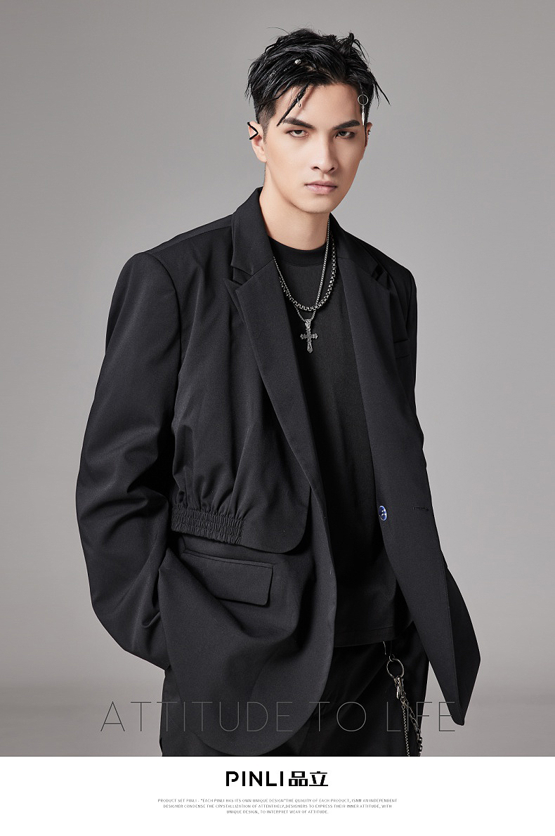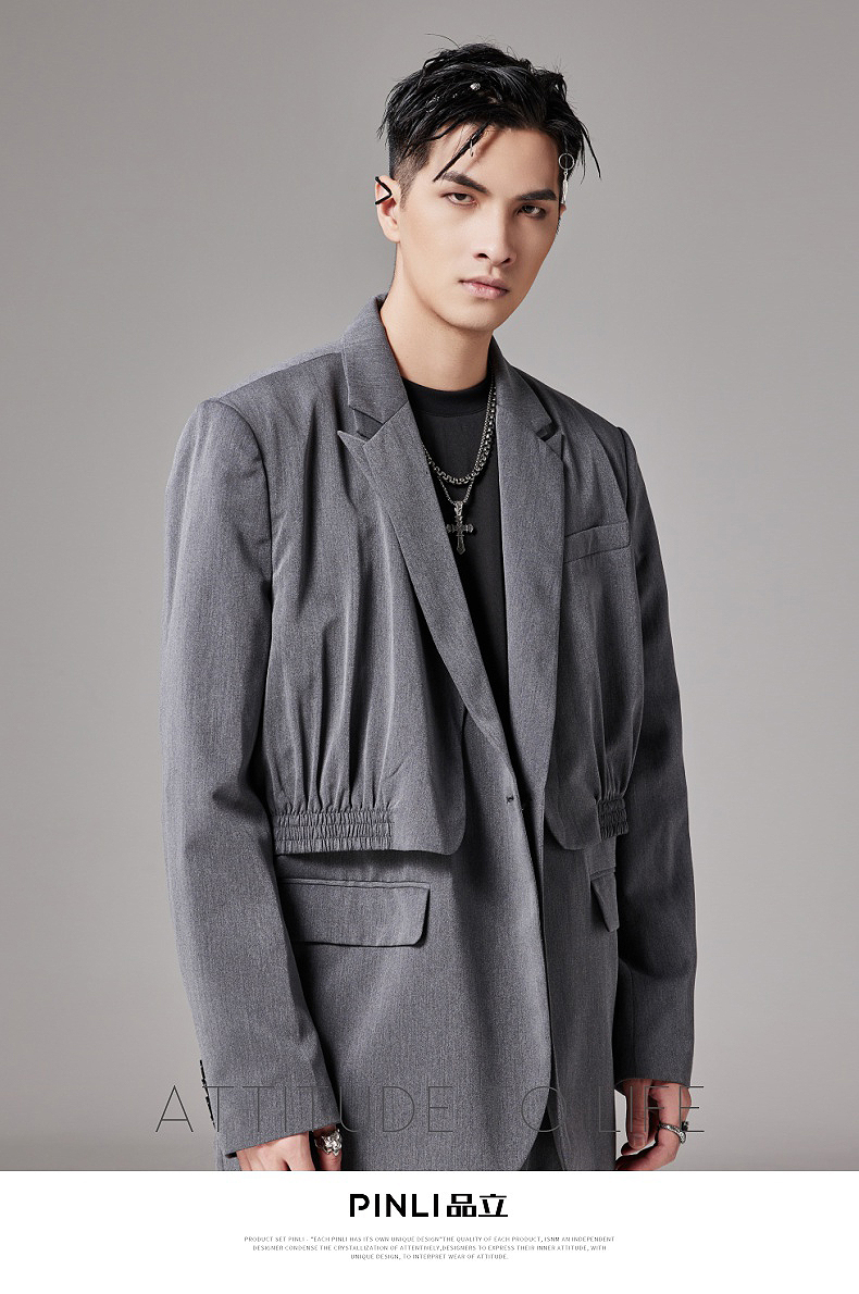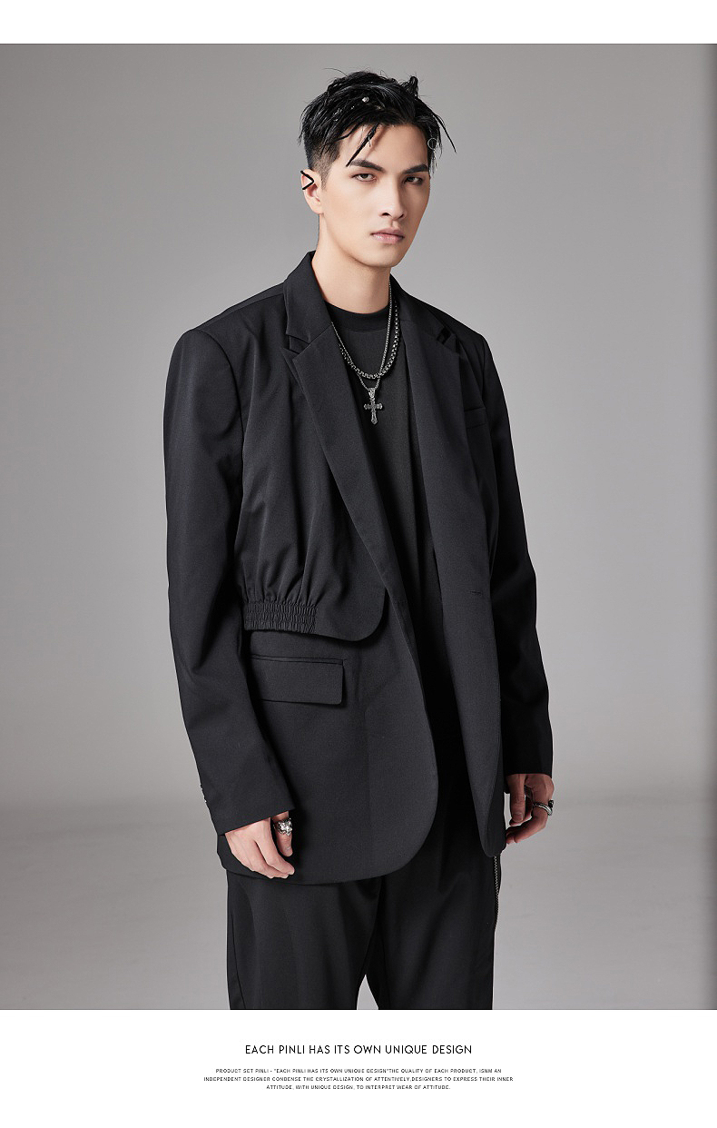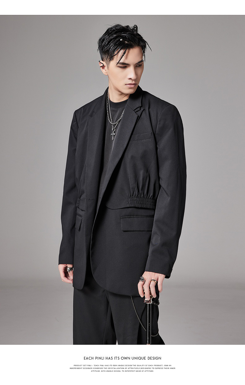 PINLI品立裁魂秋季新款假两件休闲西服外套男士潮BC213306131