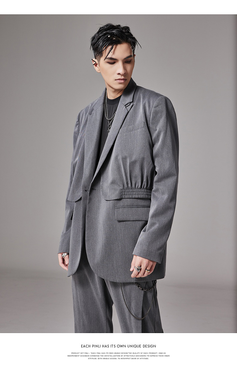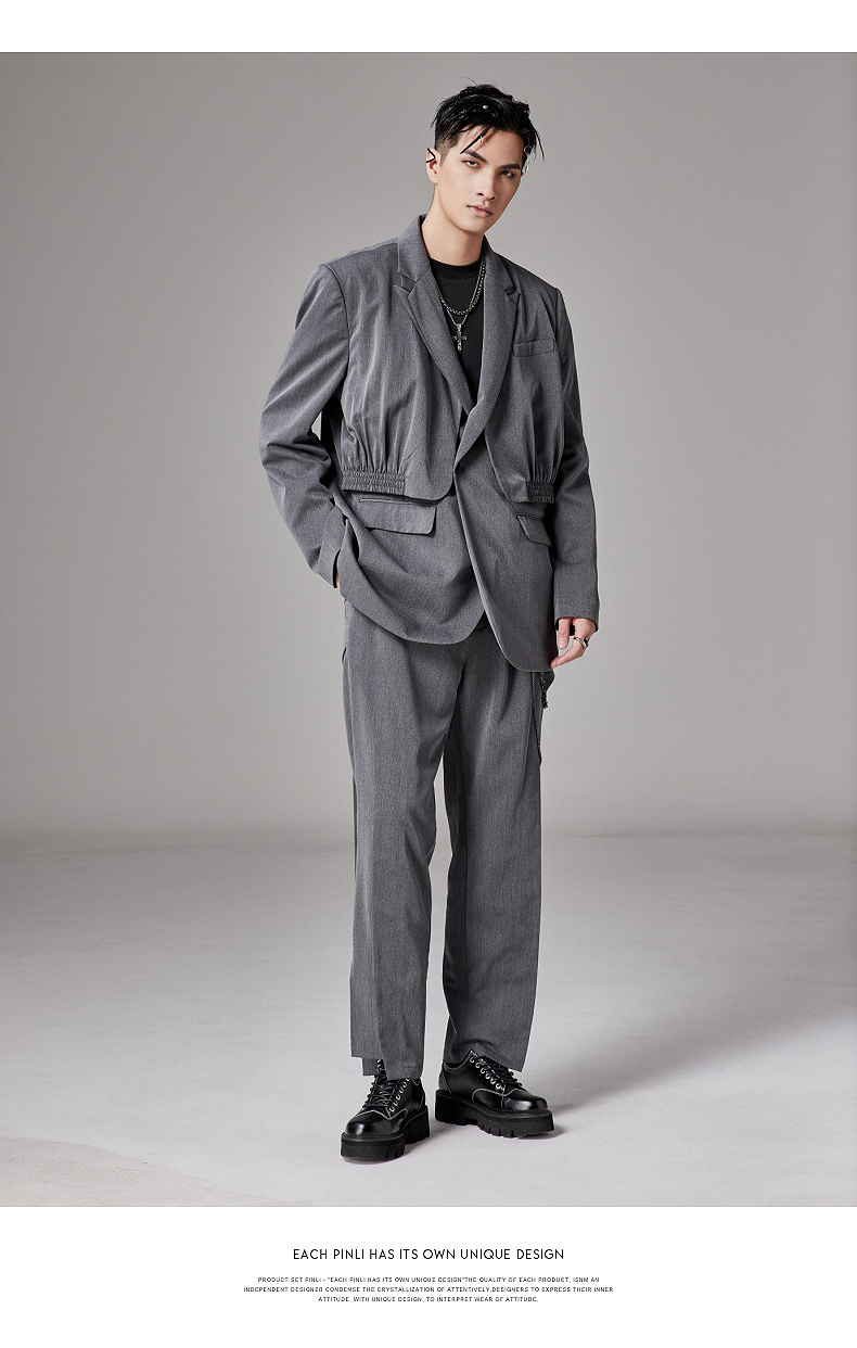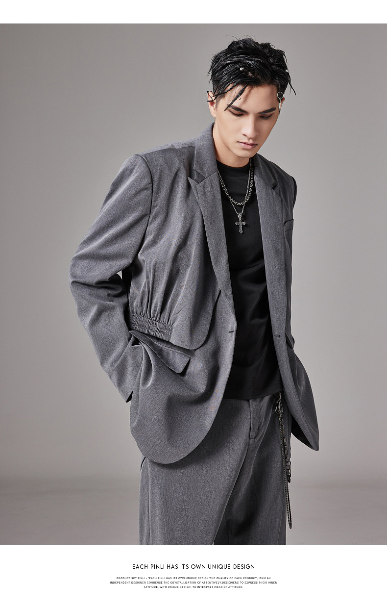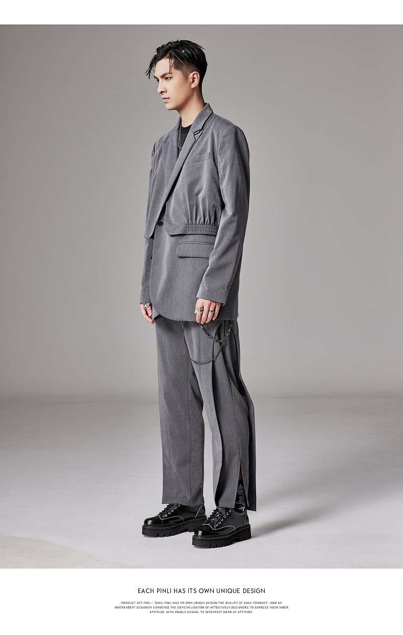 PINLI品立裁魂秋季新款假两件休闲西服外套男士潮BC213306131
