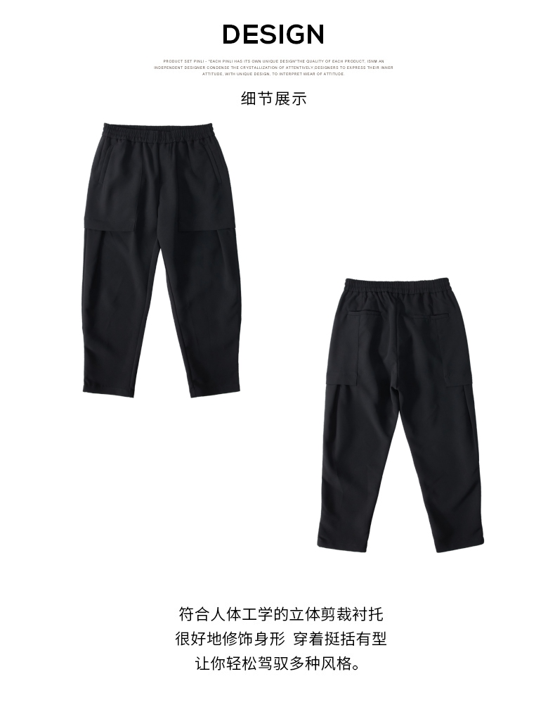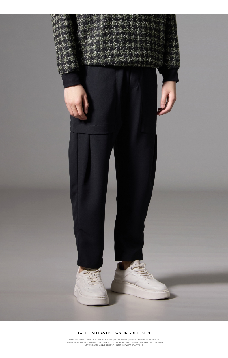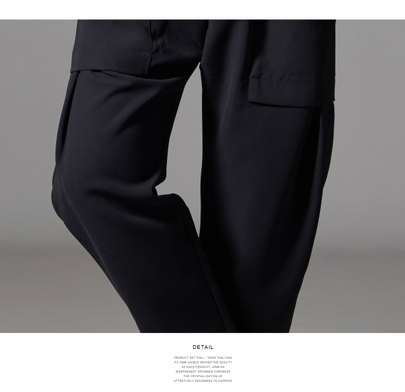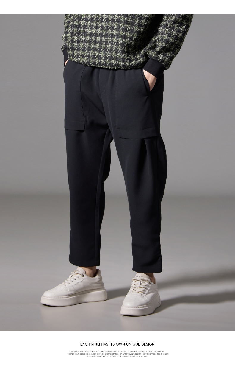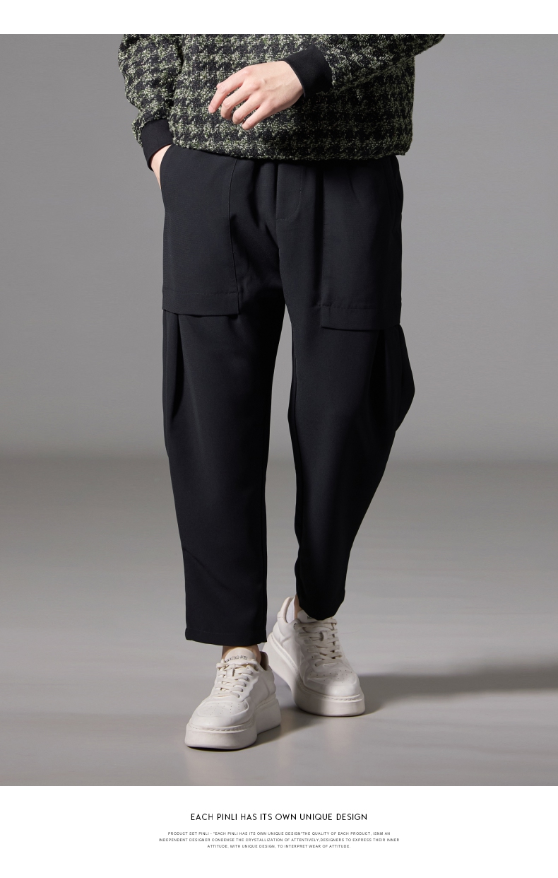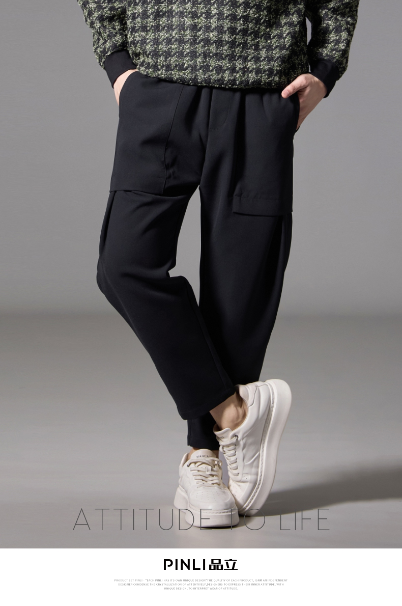 PINLI品立秋季新款黑色大口袋休闲裤男士潮牌时尚百搭长裤子B243117047