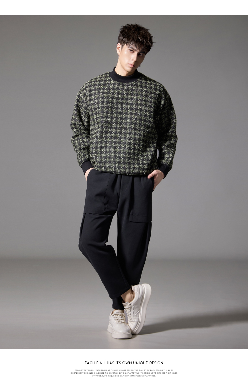 PINLI品立春季新款男士宽松立领亮片织带长袖T恤上衣体恤潮牌B253111106