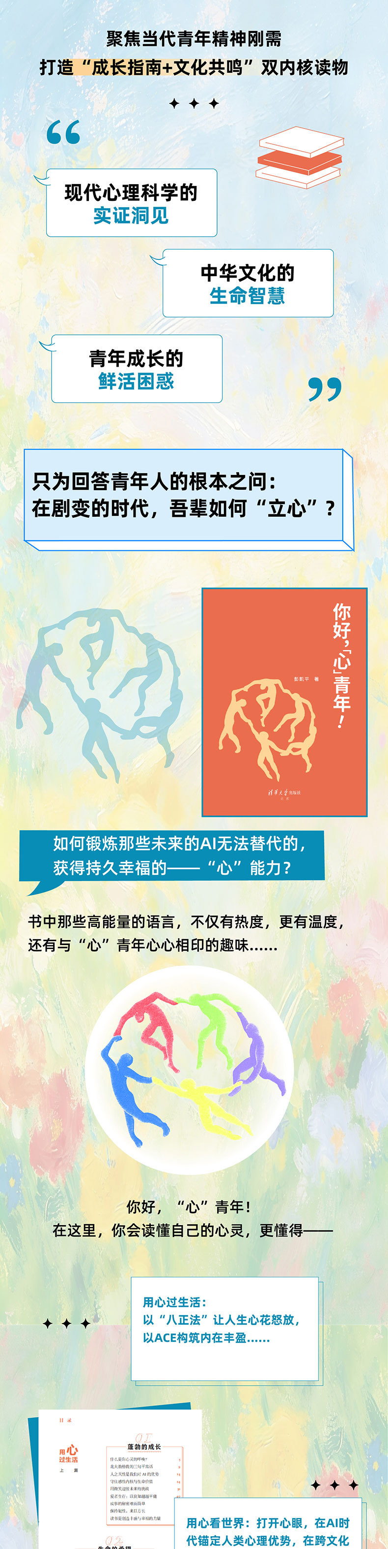 你是否也曾在“做自己”与“融社会”间挣扎?在文化碰撞中困惑于身份归属?在成长焦虑里找不到清晰方向?《你好,“心”青年!》为当代青年的精神迷茫而来,是清华大学新百年教学成就奖获奖教授彭凯平给大家的一本幸福枕边书,解锁新时代青年的自我实现之道。清华大学彭凯平教授从2017年到2024年,担任清华大学社会科学学院院长期间,在学院所举办的开学典礼、毕业典礼、校内外论坛、新闻采访、重要庆典等诸多场合所做的演讲、发言或者谈话,它们诞生于礼堂的目光中,酝酿在深夜的台灯下,最终凝结成带着心灵温度的文字,渴望给每一个新时代的个性青年带去对美好未来的无限憧憬。 从《论语》中的“君子”,到梁启超笔下的“新青年”,再到数字时代的“心青年”,书中没有空泛的理论说教,只有贴近日常的洞察。本书以“心青年成长”为核心,通过“向内关照生活”“向外洞察世界”两大篇章,搭配后记对文化与心智的深度升华,构建起“个人成长-生活实践......
