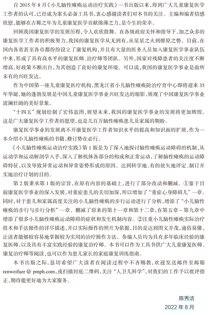 01.《小儿脑性瘫痪运动治疗实践》是儿童康复领域专业参考书,首版出版于2015年,广受读者好评,医务工作者一直把本书作为案头必备参考书。
