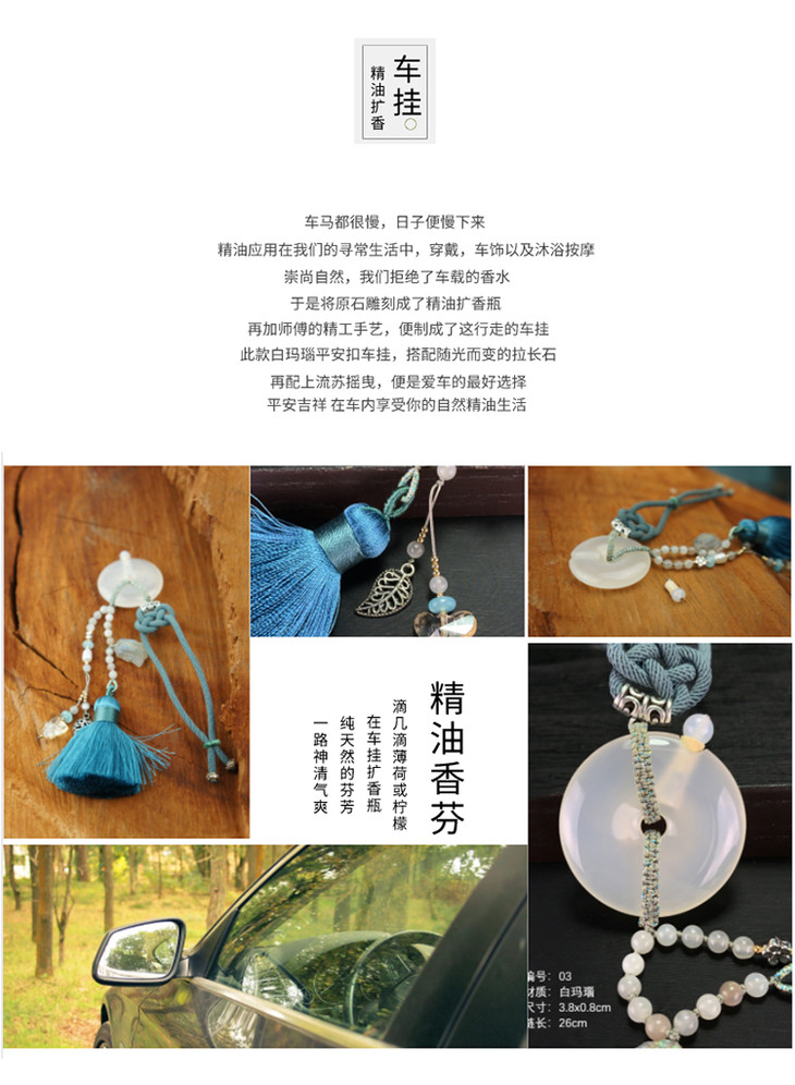 【长保平安】 白玛瑙+拉长石+平安如意精油扩香车挂 车饰品 滴精油 扩香