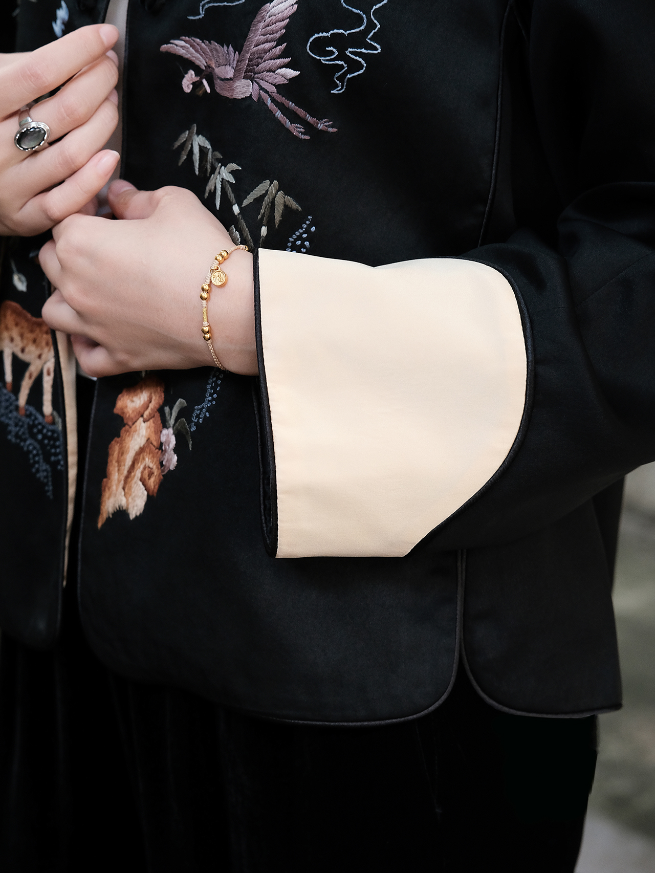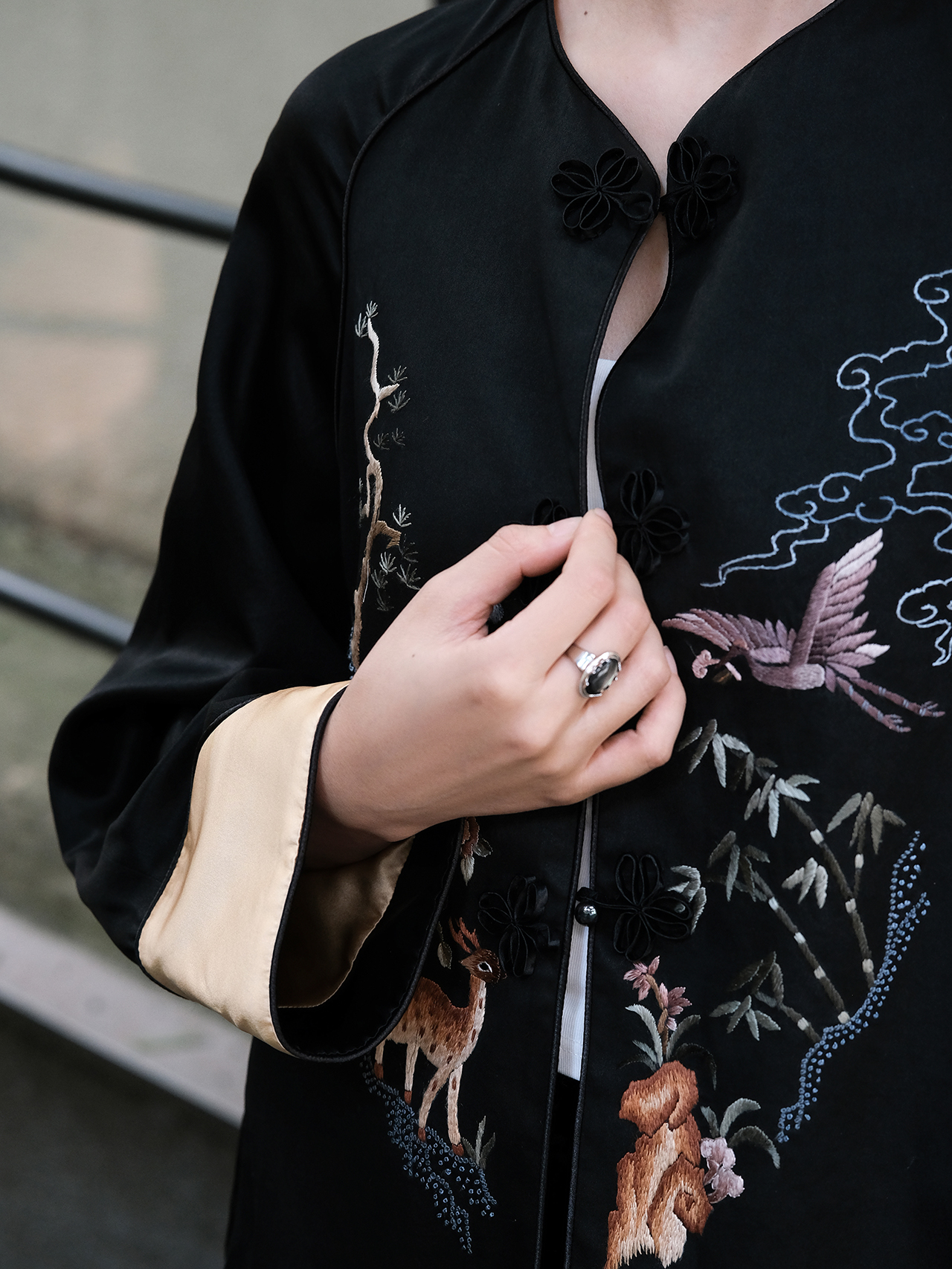 盛唐牡丹|重缎真丝鹤鹿同春手绣外套