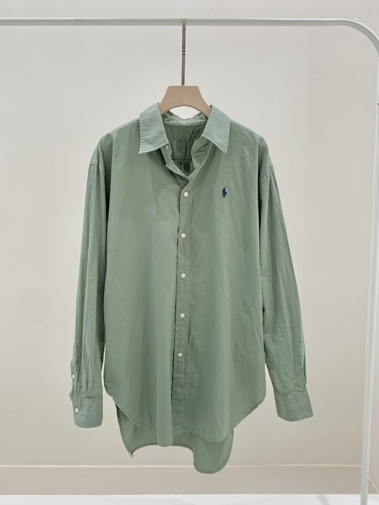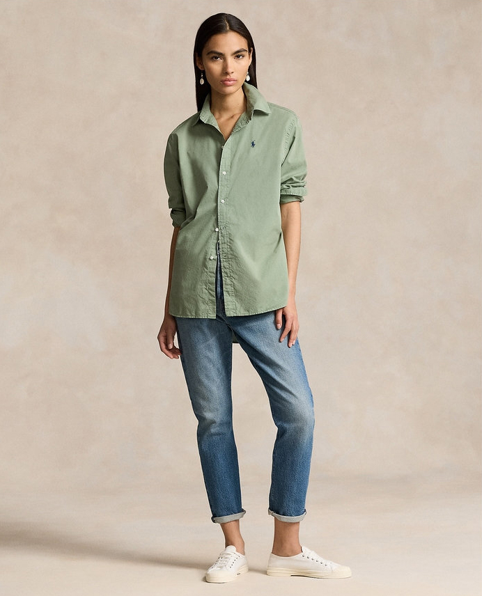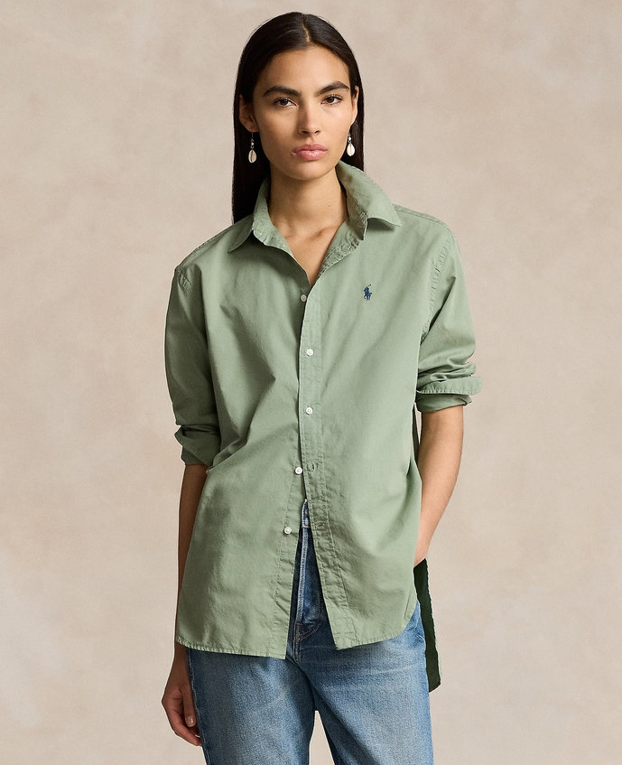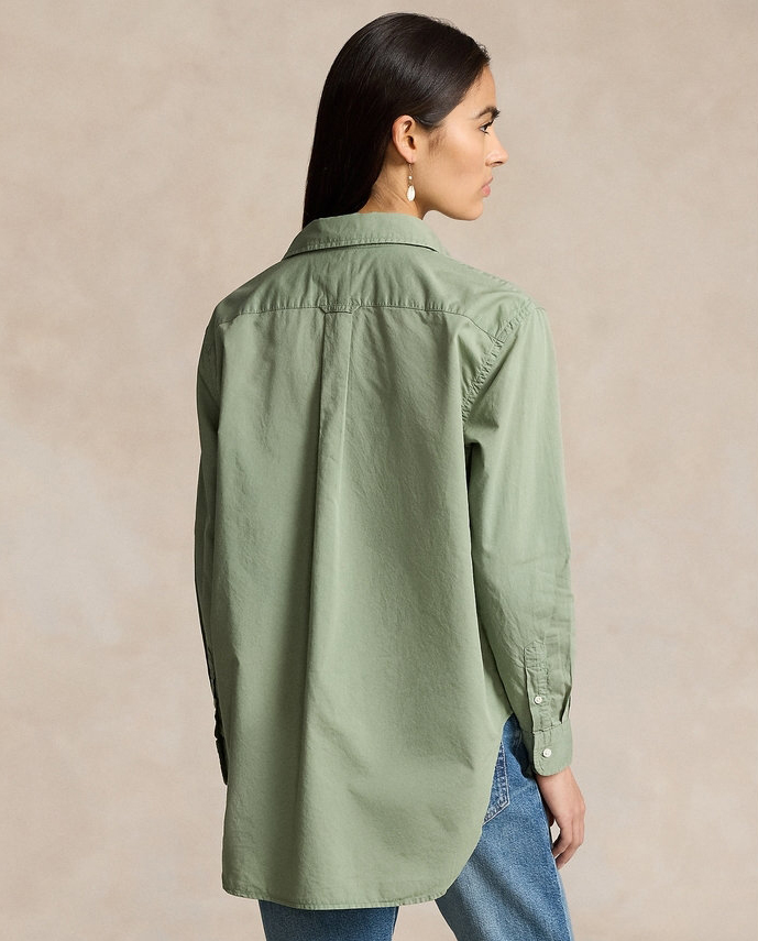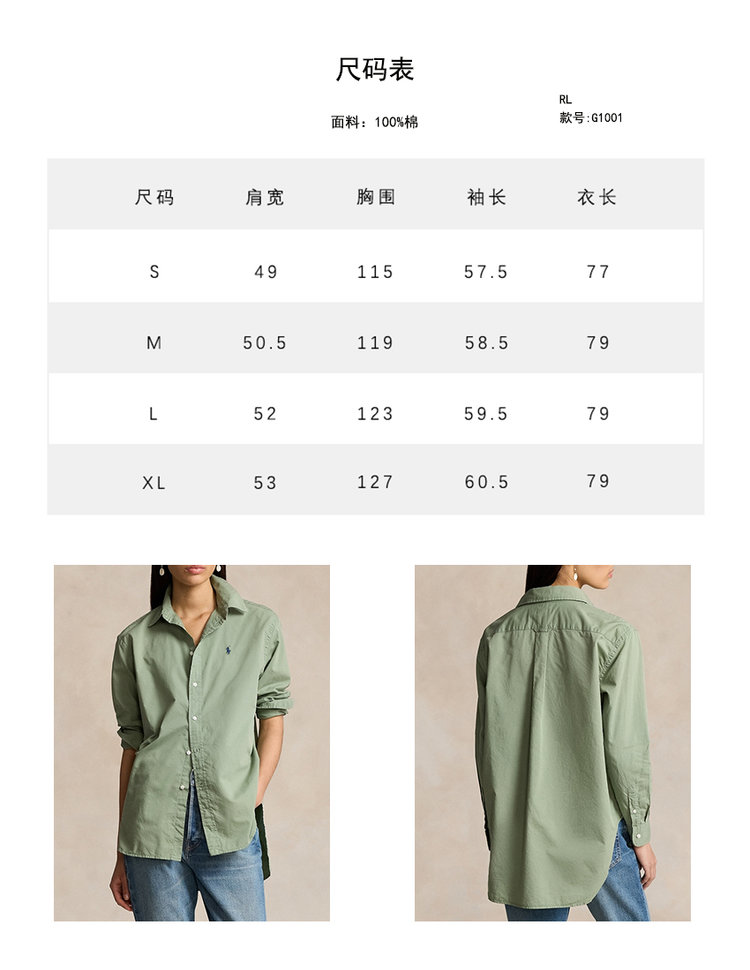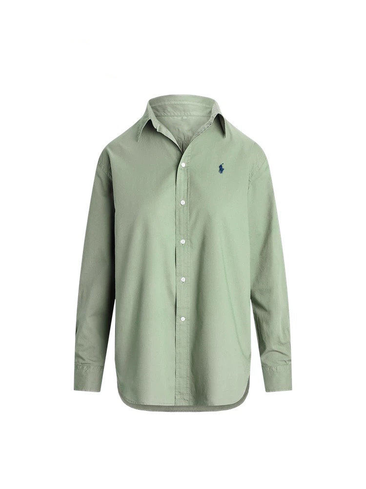 拉夫劳伦大版型斜纹棉布衬衫 宽松的版型 落肩袖设计 上身轻盈无束缚感 水洗60支长绒棉 小翻领+单排扣设计 底摆弧形开叉设计