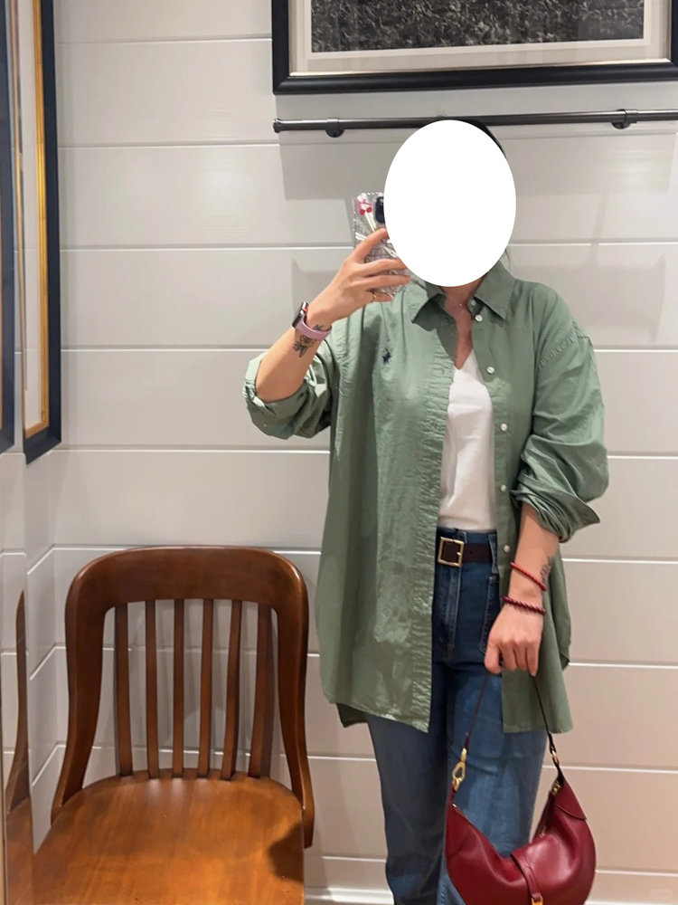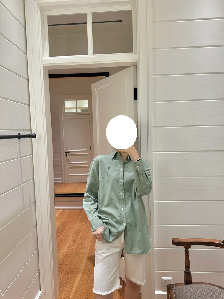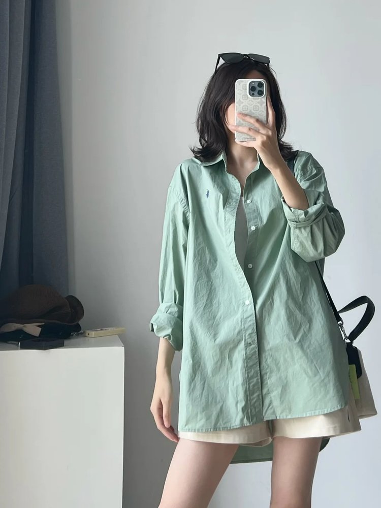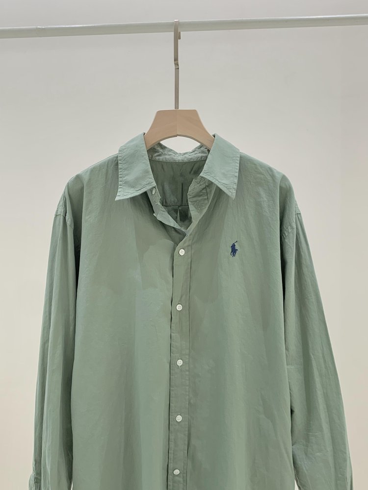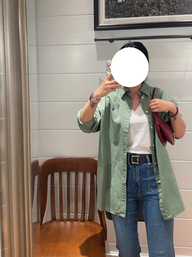 拉夫劳伦大版型斜纹棉布衬衫 宽松的版型 落肩袖设计 上身轻盈无束缚感 水洗60支长绒棉 小翻领+单排扣设计 底摆弧形开叉设计
