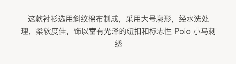 高质感!水洗60支长绒棉,高质超长棉纤维,亲肤不言而喻,特点是新型高支高密,程度远高于市面棉,使款式看起来更加饱满有型,这款衬衫选用斜纹棉布制成,采用大号廓形,经水洗处理,柔软度佳,饰以富有光泽的纽扣和标志性 Polo 小马刺绣。