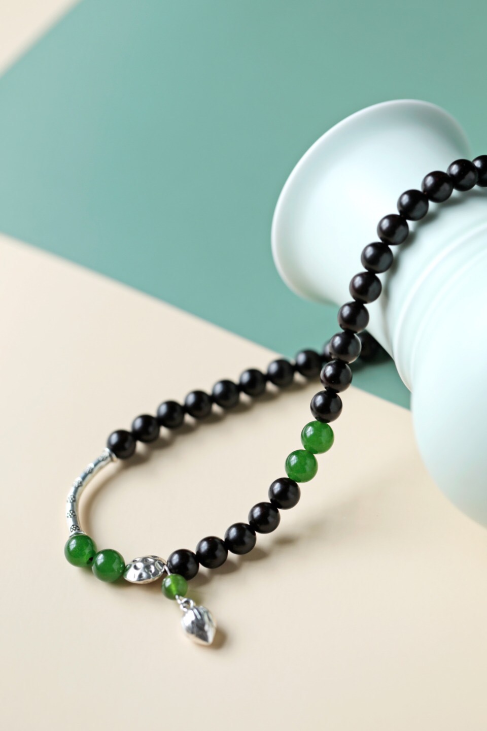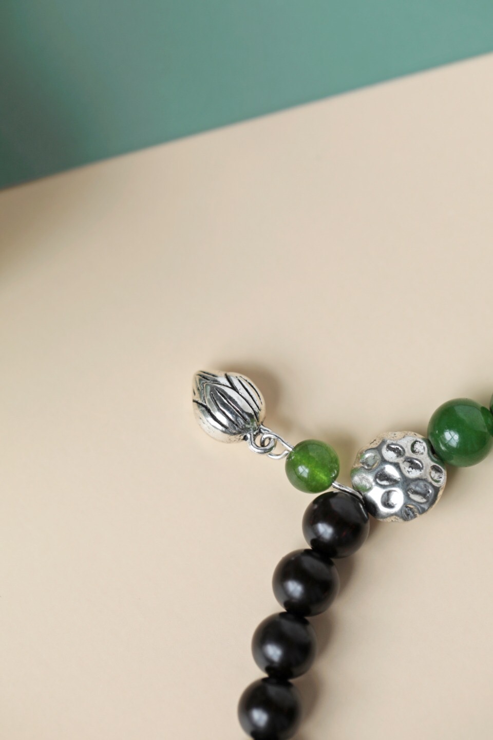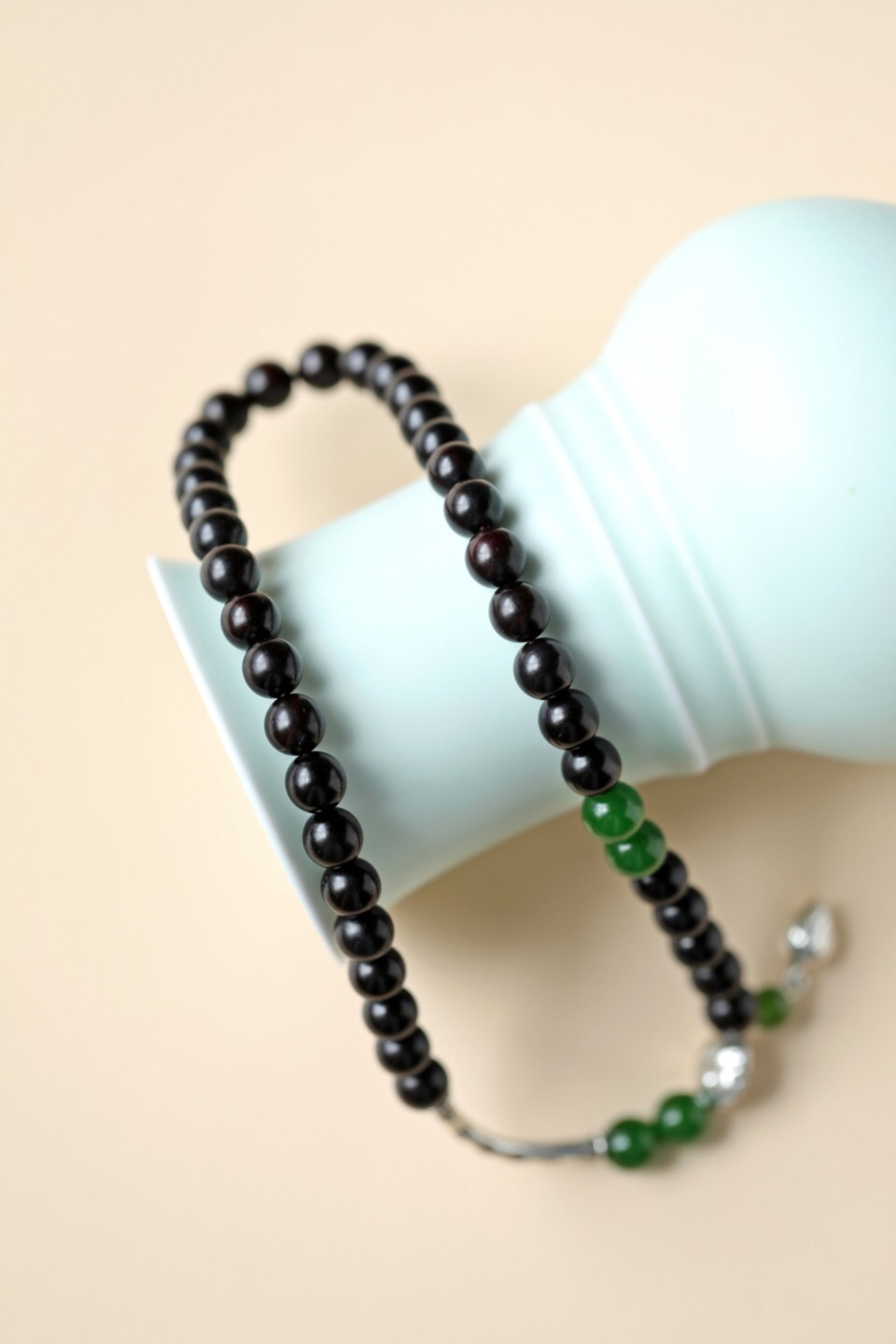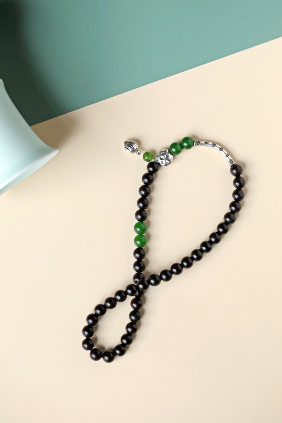 这一款手链小巧精致,简约大气,日常把玩佩戴,送爱人是非常好的。优质的紫檀料,料质细腻,颜色润,油性足,质地很好。搭配银饰珠子以及碧玉,显得更加清新和厚重。搭配过渡自然,颜值很高,显得很有尊贵之感,618送礼很不错!
