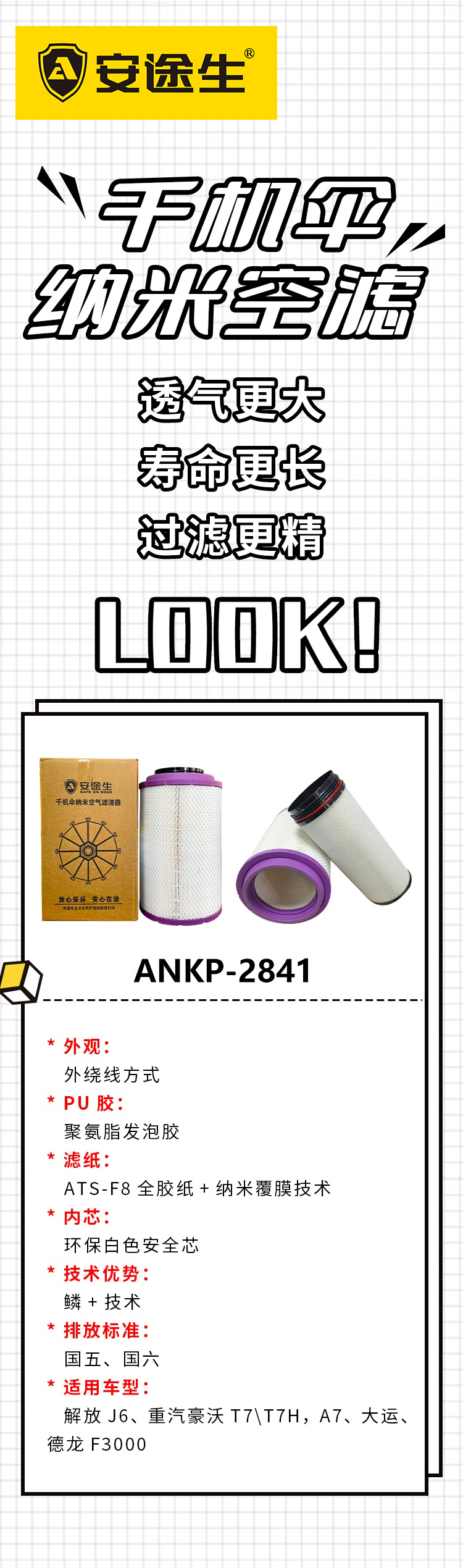安途生2841纳米千机伞空气滤芯长效10万公里J6重汽豪沃T7大运德龙