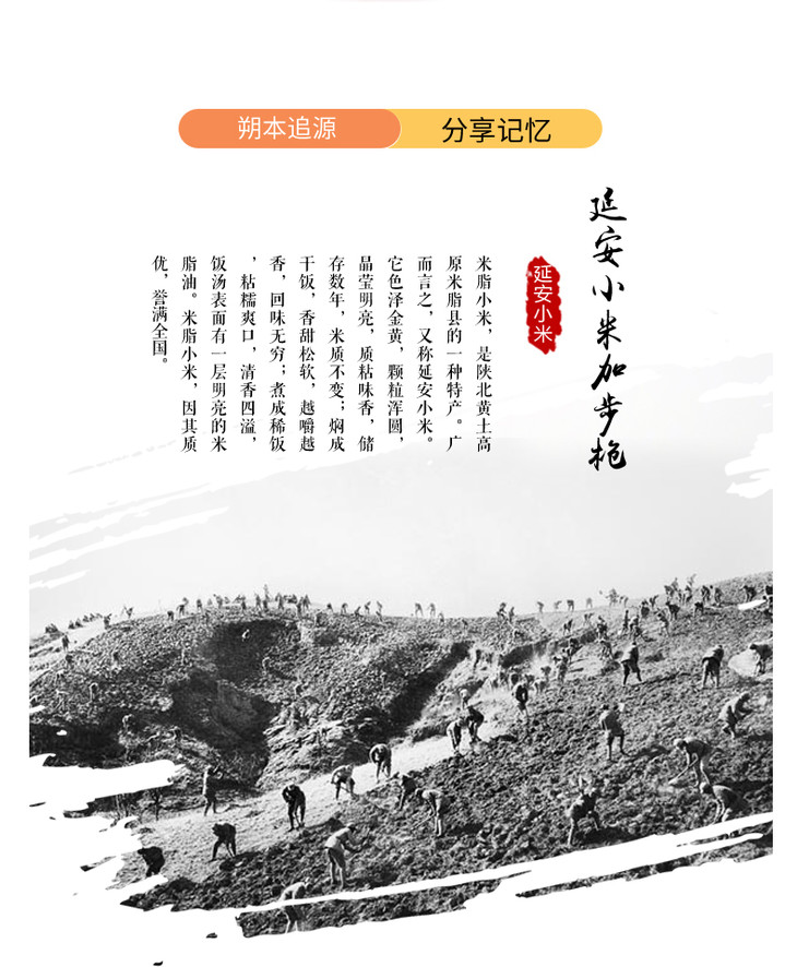 黄土情、真生活 建立苹果、红枣、小米及杂粮种植基地,通过自主专营、电商、超市、批发等渠道宣传推广延安地方产品,努力将延安的特色农产品、绿色食品、民间文化艺术产品推向全国市场