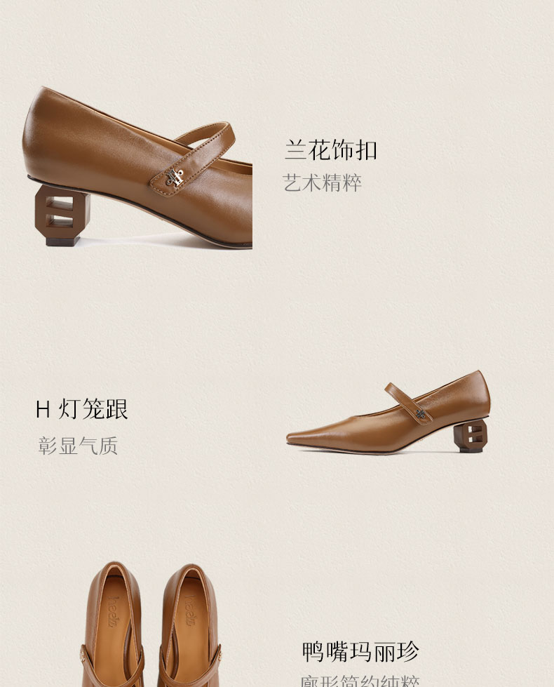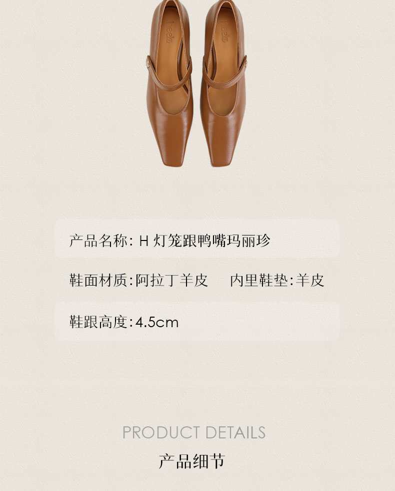 【董洁同款】|H灯笼跟阿拉丁羊皮玛丽珍单鞋4.5公分