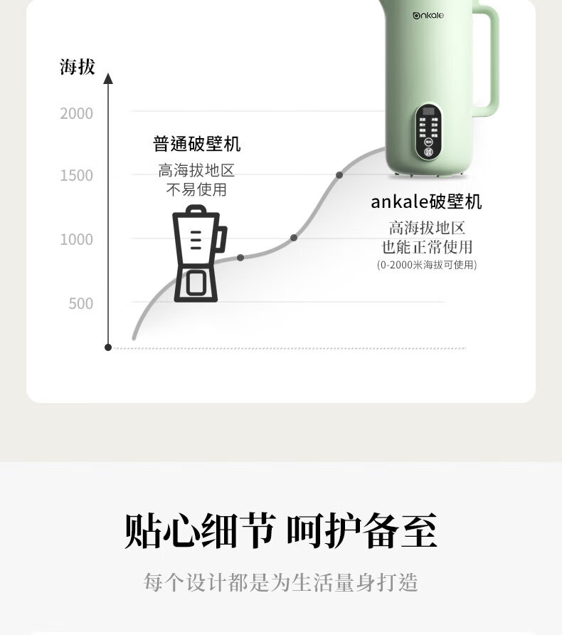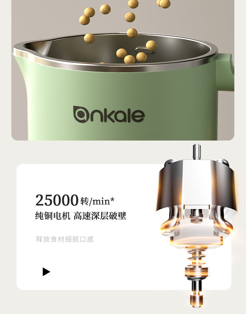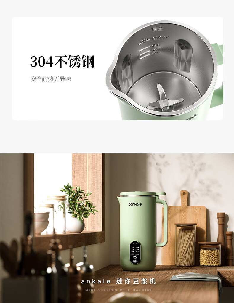 ankale 破壁机家用小型1-2人多功能全自动加热免煮免过滤食豆浆机榨汁机AJL-PB083
