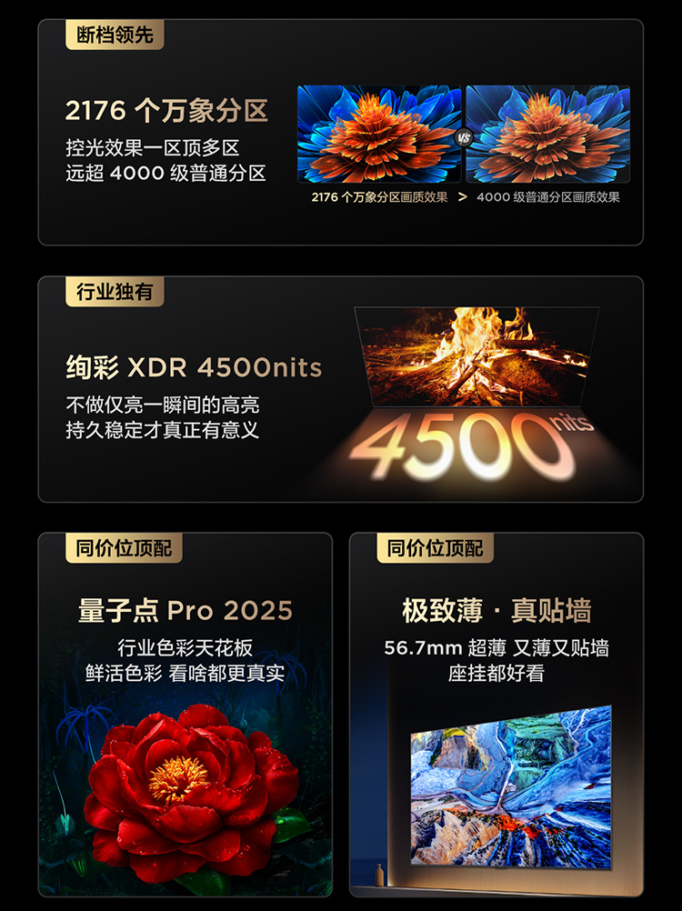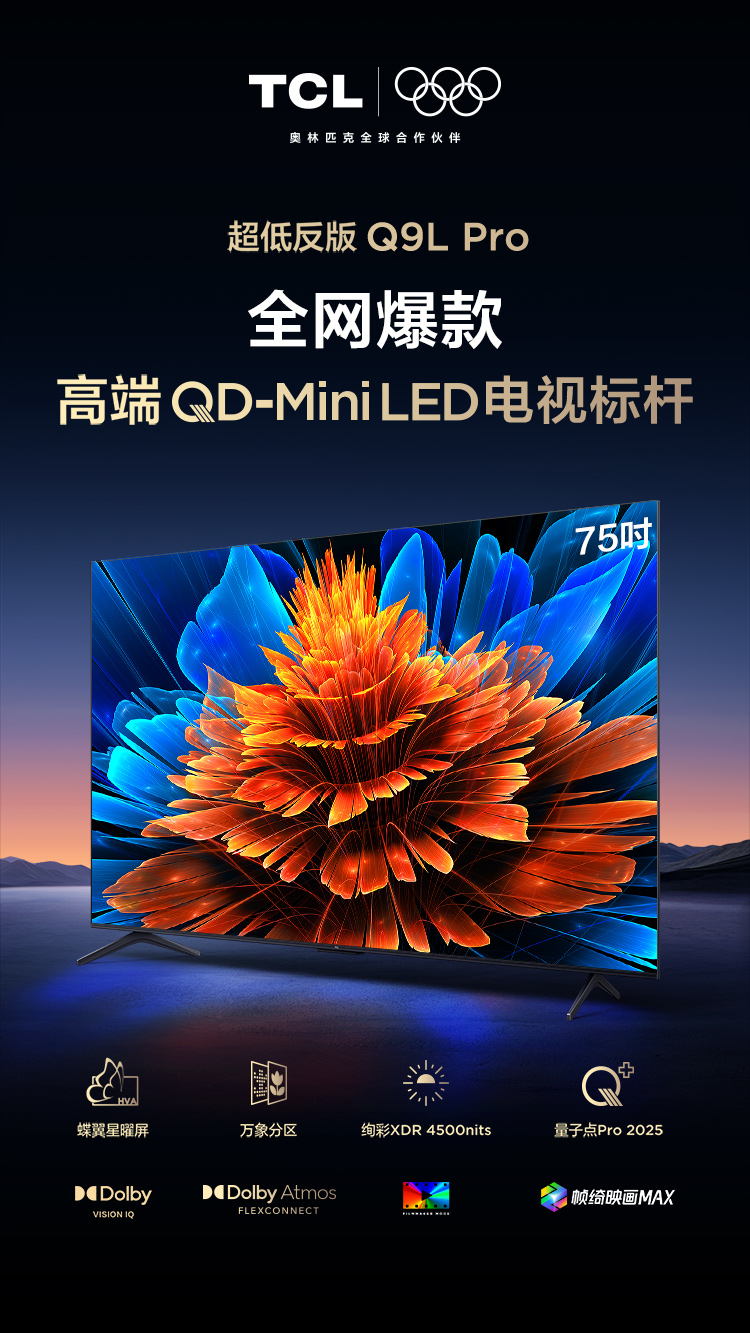 TCL电视 75Q9L Pro 75英寸 QD-Mini LED 蝶翼星曜屏 万象分区 绚彩XDR 4500nits 超薄电视