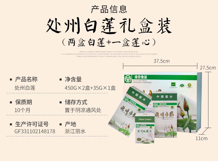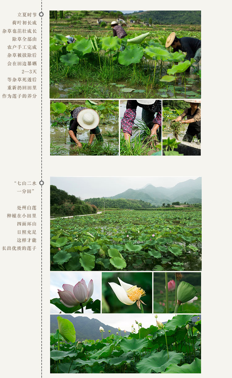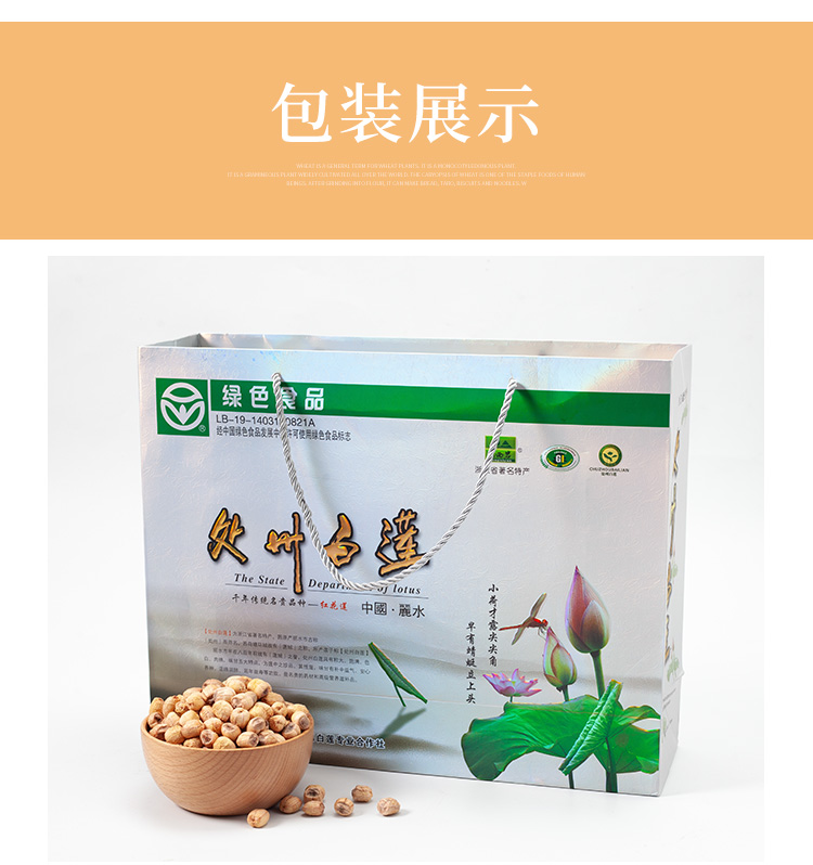 丽水早在八百年前就有"莲城"之誉。处州白莲具有粒大而圆、饱满、色白、肉绵、味甘五大特点