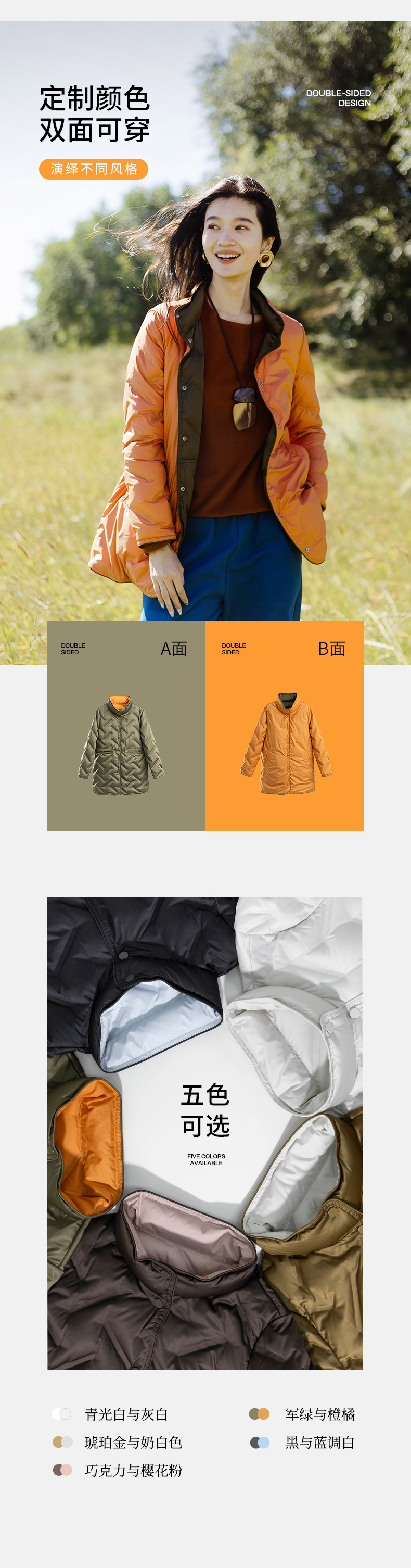 特绽放546朵/多色双面穿95波兰白鹅绒中长款宽松羽绒服女秋冬新款