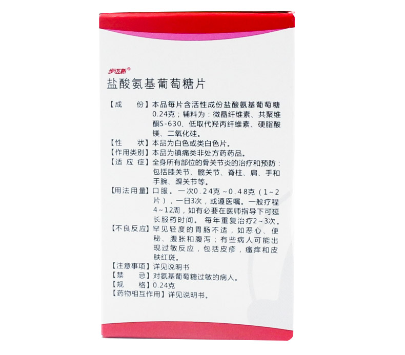 步迈新盐酸氨基葡萄糖片60片骨关节炎的治疗和预防 膝关节手腕肩