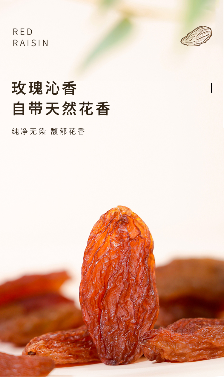 北纬纯净食品|38°新疆特产特级红香妃无籽葡萄干软糯酸甜可口提子干