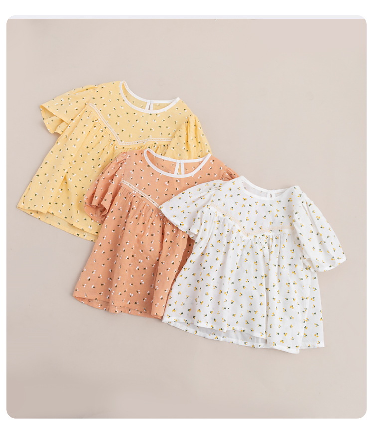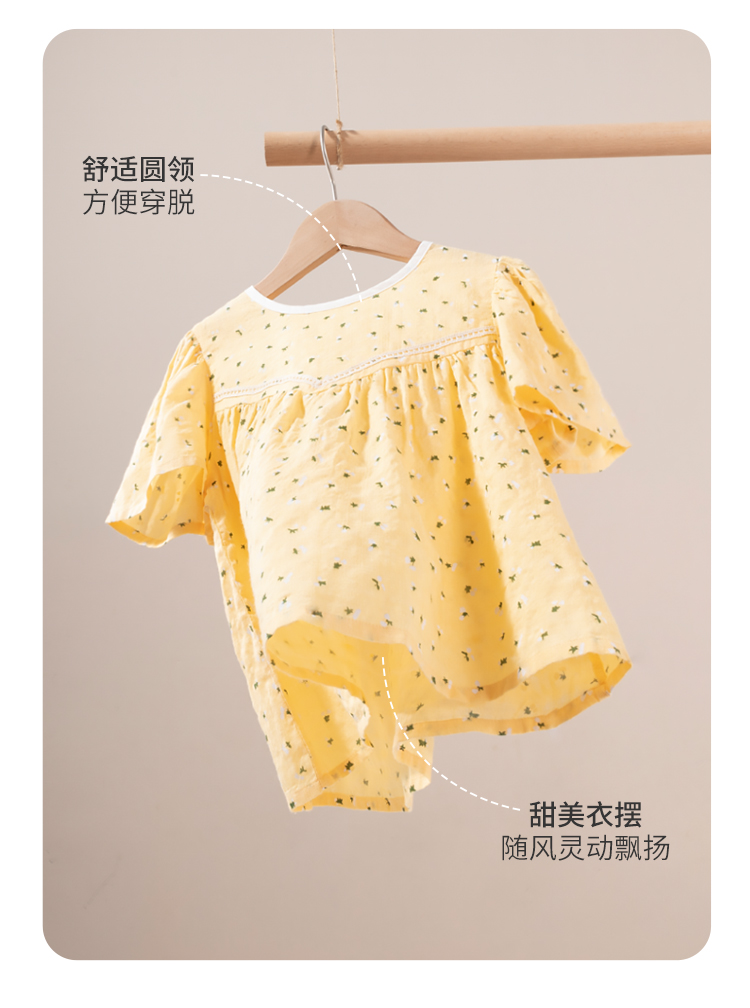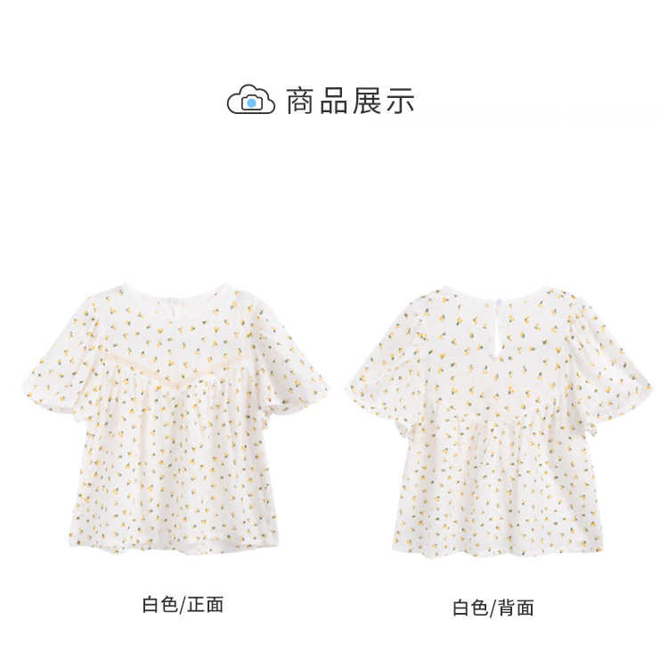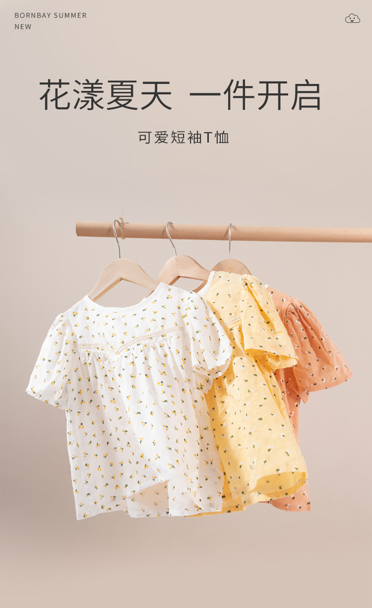 贝贝怡夏季童装小清新印花女童短袖洋气时尚上衣宝宝外出服
