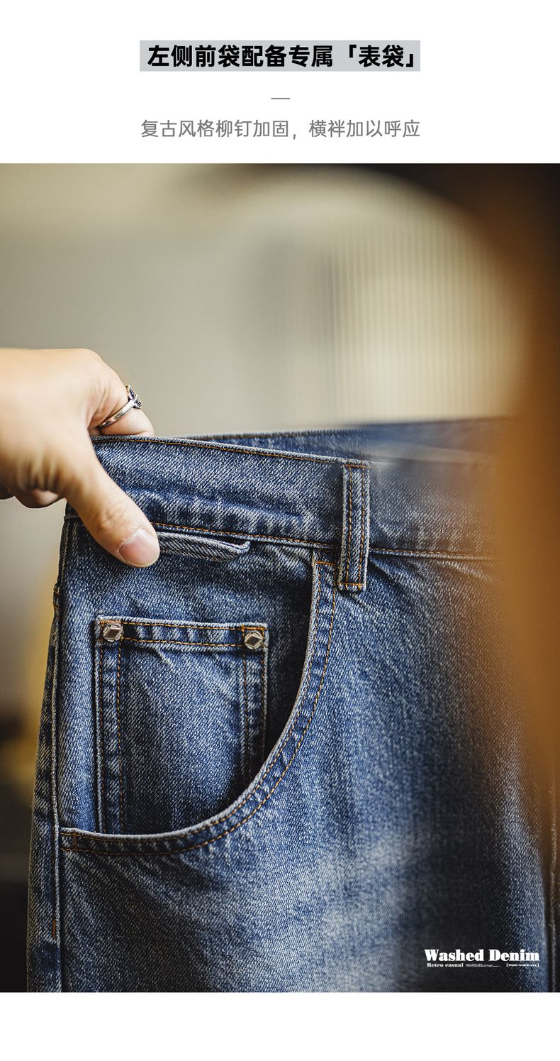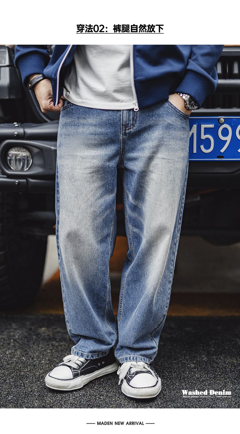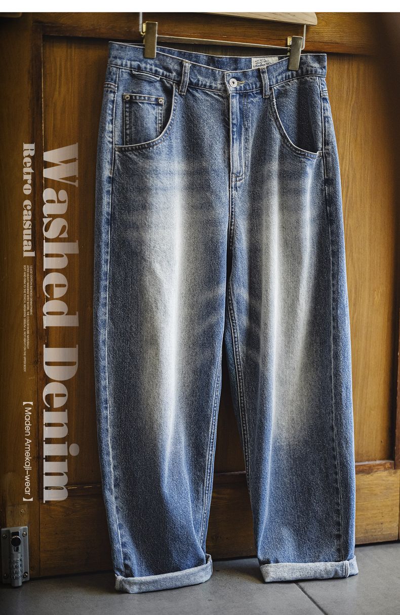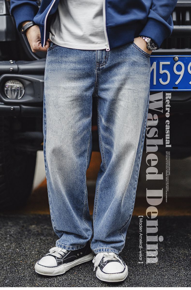 工装优选美式休闲水洗牛仔裤复古猫须磨白丹宁纯棉直筒裤子男春季