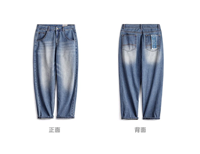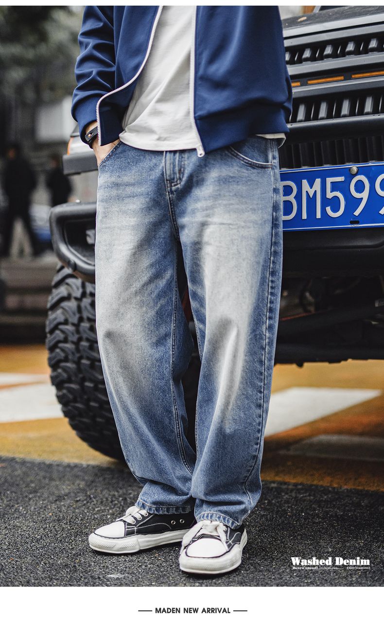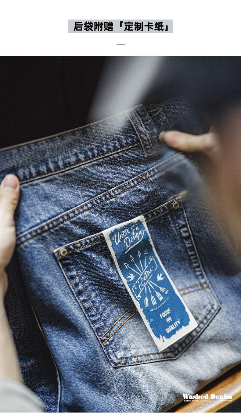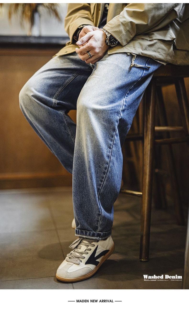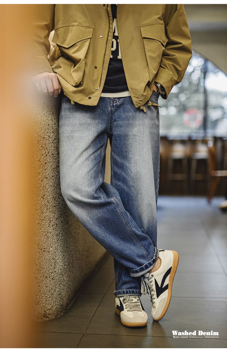 工装优选美式休闲水洗牛仔裤复古猫须磨白丹宁纯棉直筒裤子男春季