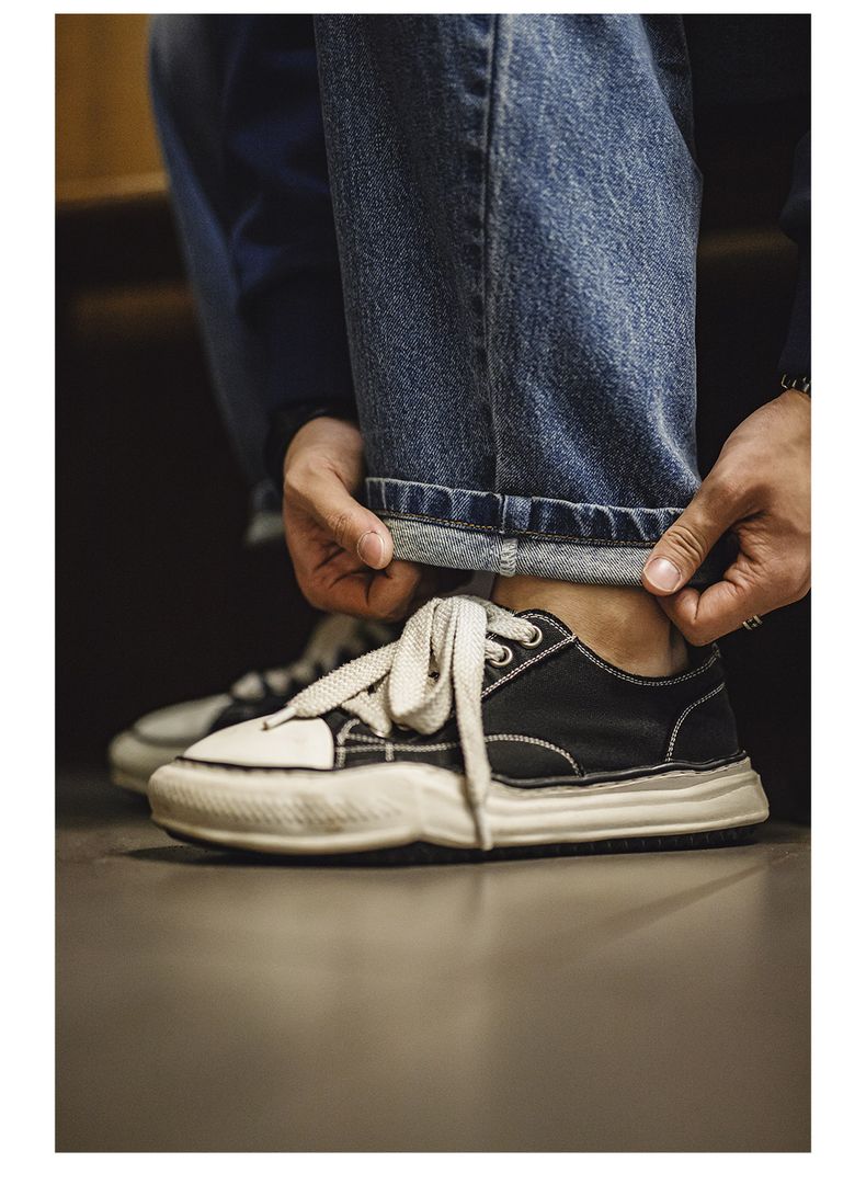 【马登男鞋】开口笑帆布鞋夏季男鞋复古低帮黑色休闲鞋子女鞋潮流透气情侣板鞋