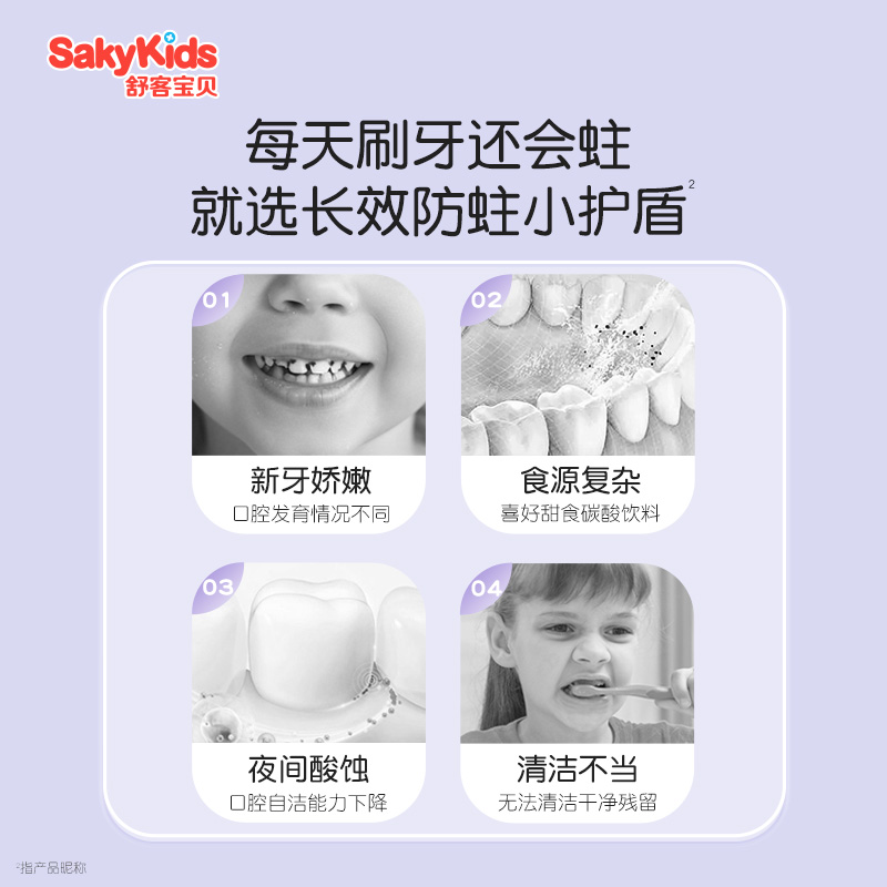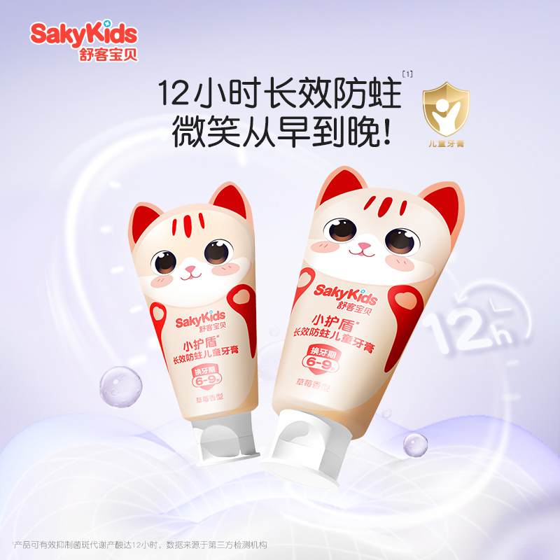 【限时折扣】舒客宝贝小护盾长效防蛀儿童牙膏 60g*2支 (分龄款: 2-5岁/6-9岁/10-12岁) -新旧款包装随机,赠儿童成长牙刷2支(颜色随机)fx
