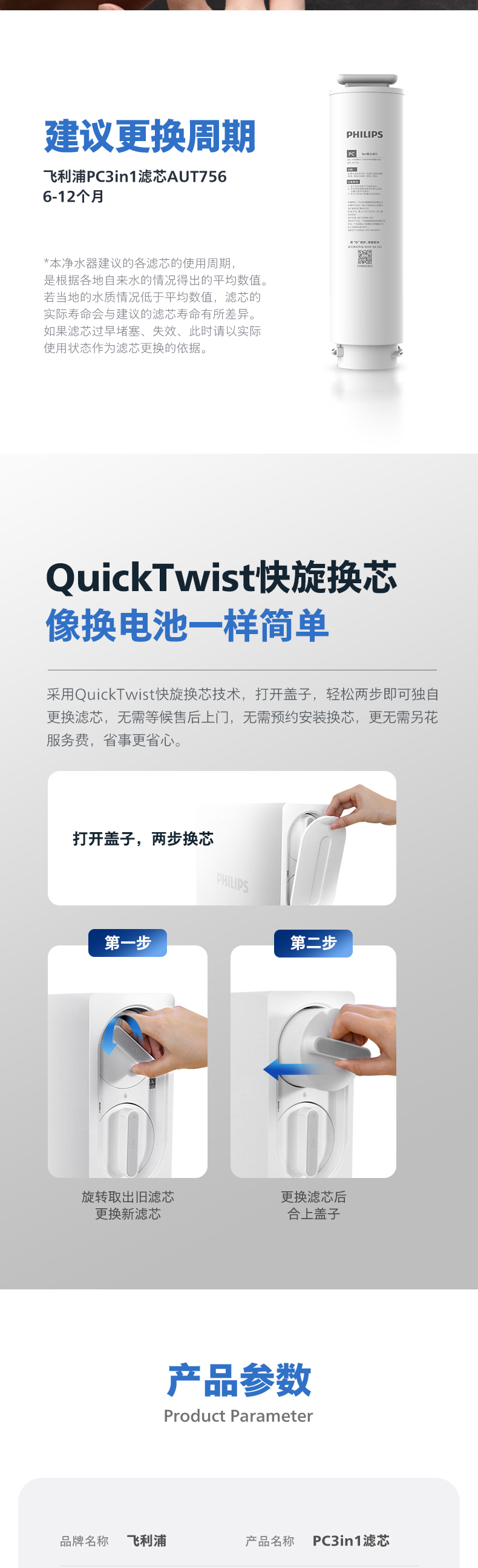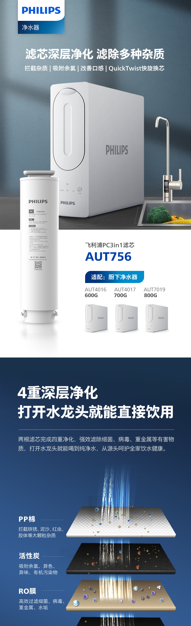 飞利浦(PHILIPS)台式净水器滤芯AUT756 适用:AUT1016 AUT4016(600G) AUT4017(700G) AUT7019