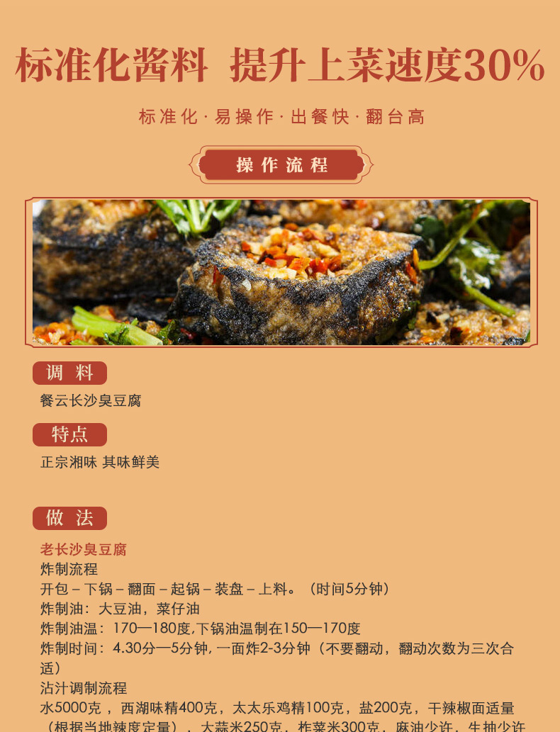 餐云标准化酱料为餐饮节约厨房人工成本30%,无厨师经验从业者通过标准化流程亦可操作,30名国内中餐大厨专家365天持续研发创新!