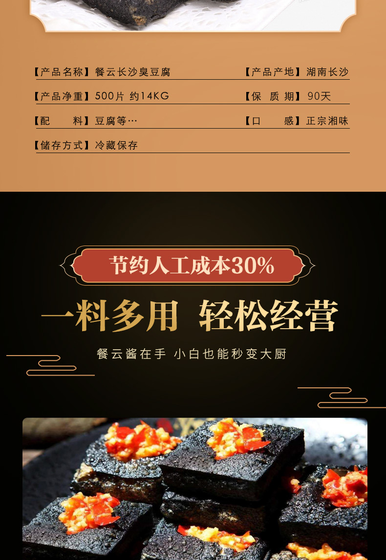 餐云老长沙臭豆腐(一箱500片) 源自老长沙市井的传统工艺制作 用匠心只为传承经典老长沙小吃 排队都要吃的地道老长沙味 餐云品牌荣誉出品