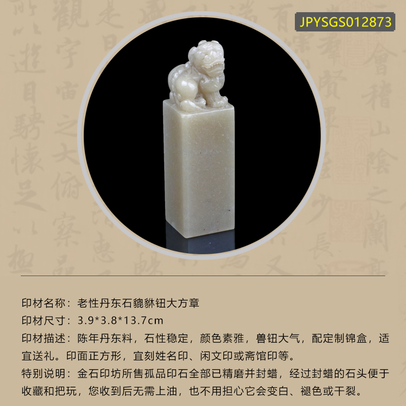 孤品012873:老性丹东石貔貅钮大方章-3.9*3.8*13.7cm