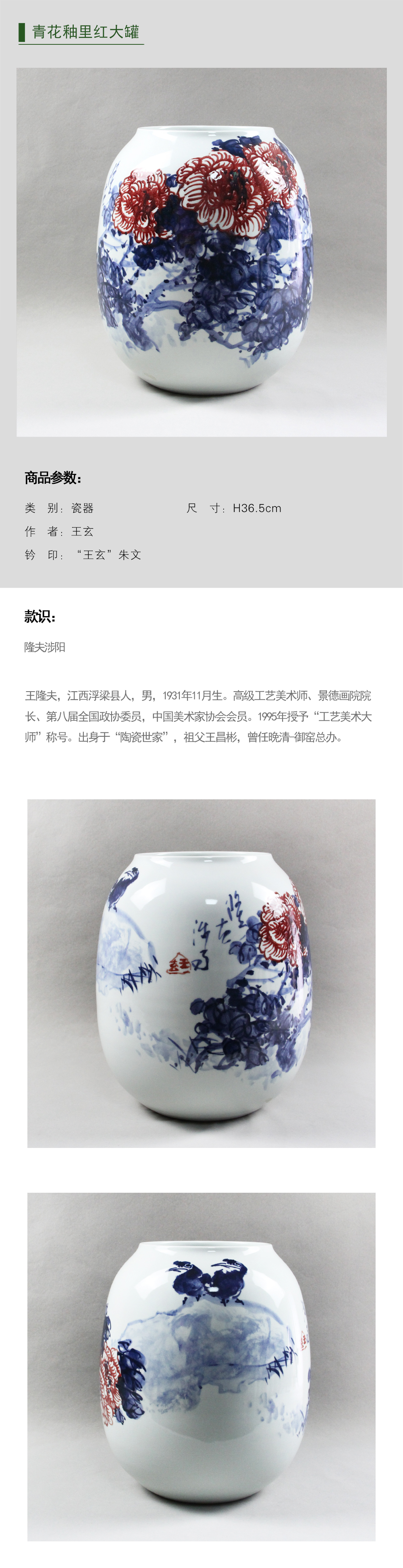 《牡丹图》青花釉里红大罐