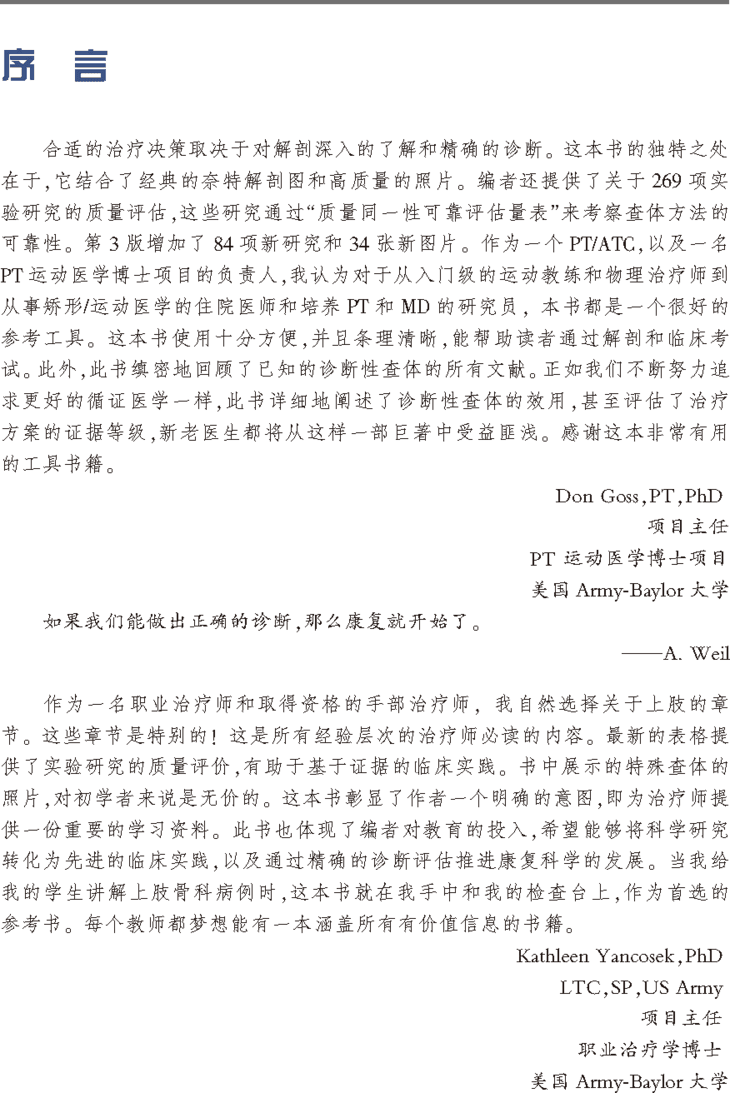 •本书包含大量表格,总结了检测可靠性、诊断效用、研究质量、解剖学和生物力学以及可以应用于实践的总结性建议。
