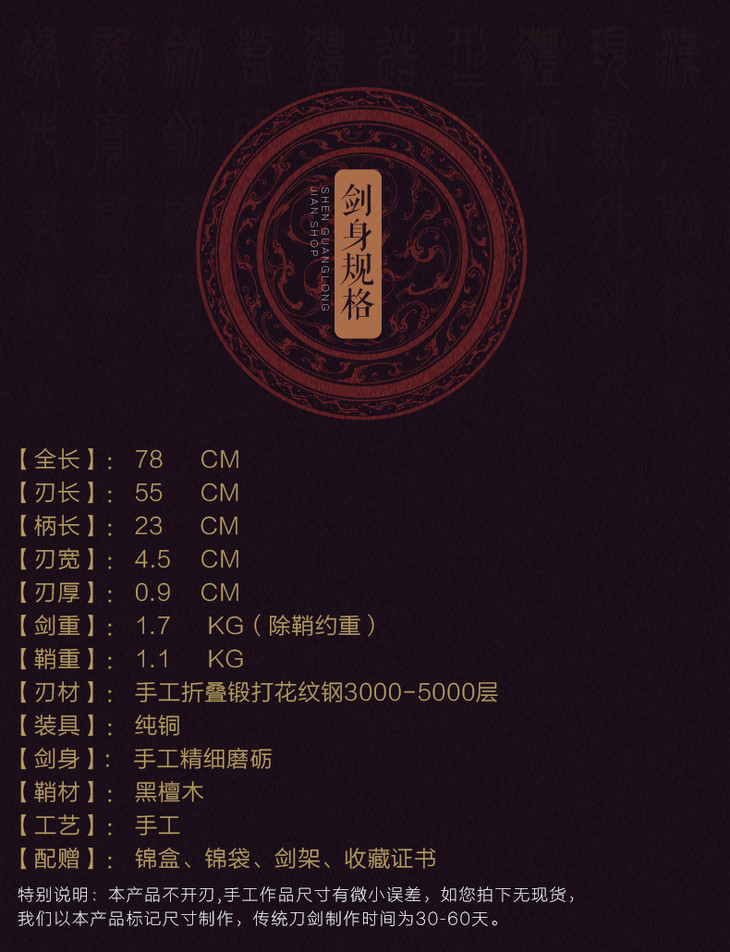 玄武剑 沈州作品 花纹钢剑 龙泉沈广隆宝剑 全手工传统剑 工艺品 未开刃