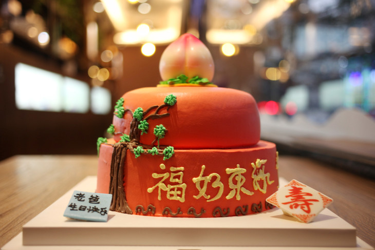 祝寿款 寿桃 不老松 喜庆 福如东海 寿比南山 双层 贺寿蛋糕