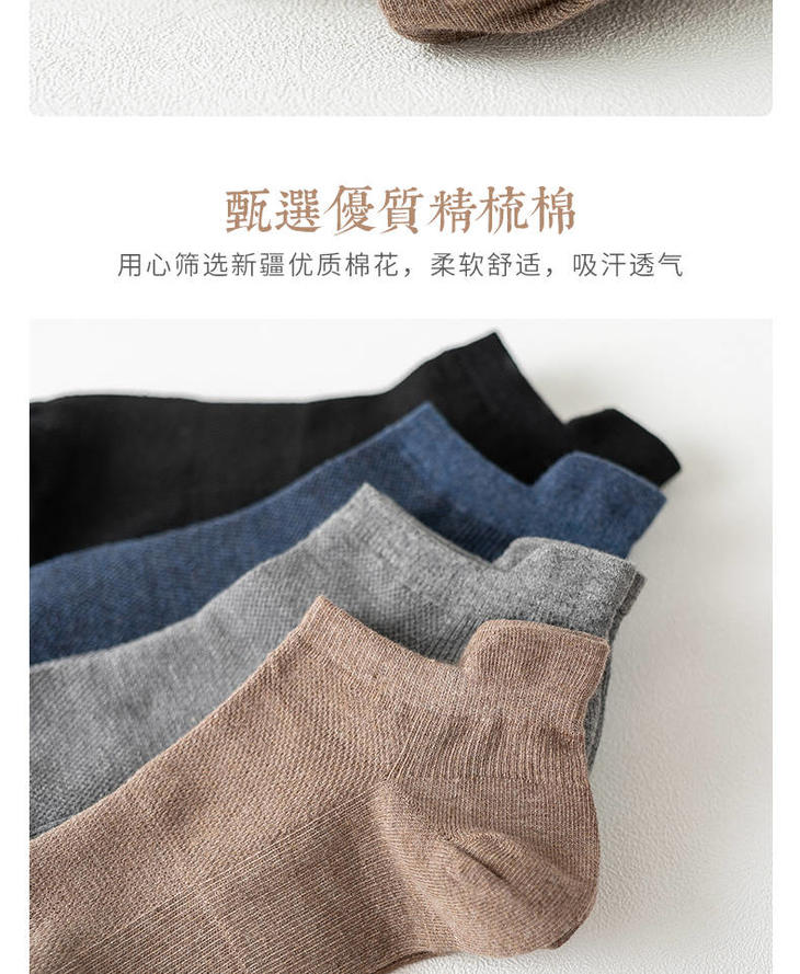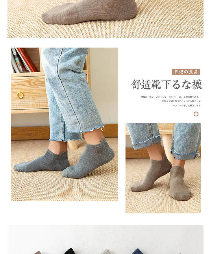 袜子男短袜夏季男士运动袜子防臭吸汗纯色棉短筒袜低帮薄款网眼袜