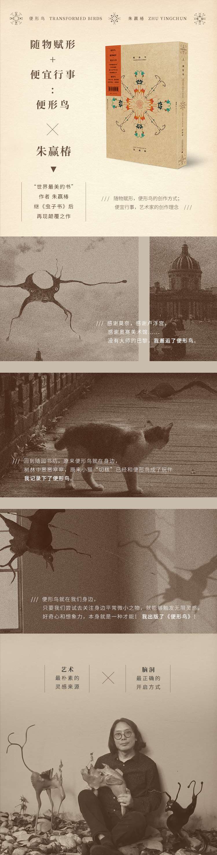 《便形鸟》是极具颠覆性的,虽未挑战读者之三观,却触动了我们感知艺术的底线。《便形鸟》又是非常保守的,它与朱赢椿先生最为重要的设计理念一脉相承——艺术源于生活,艺术源于发现。