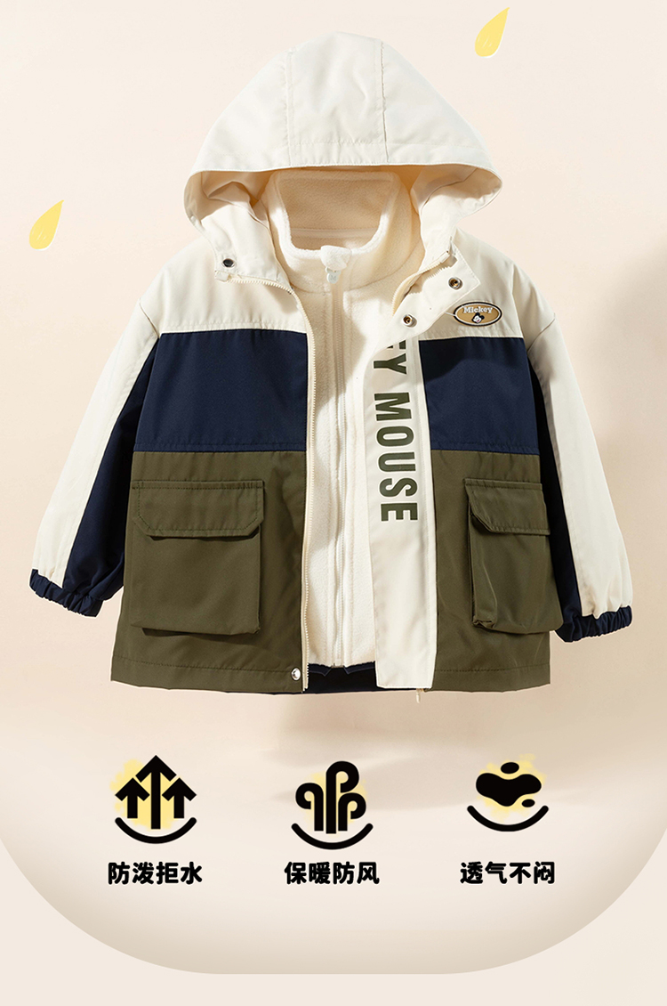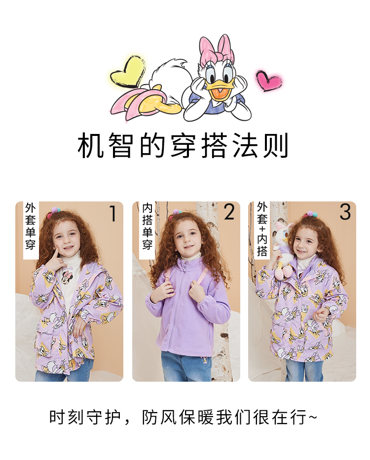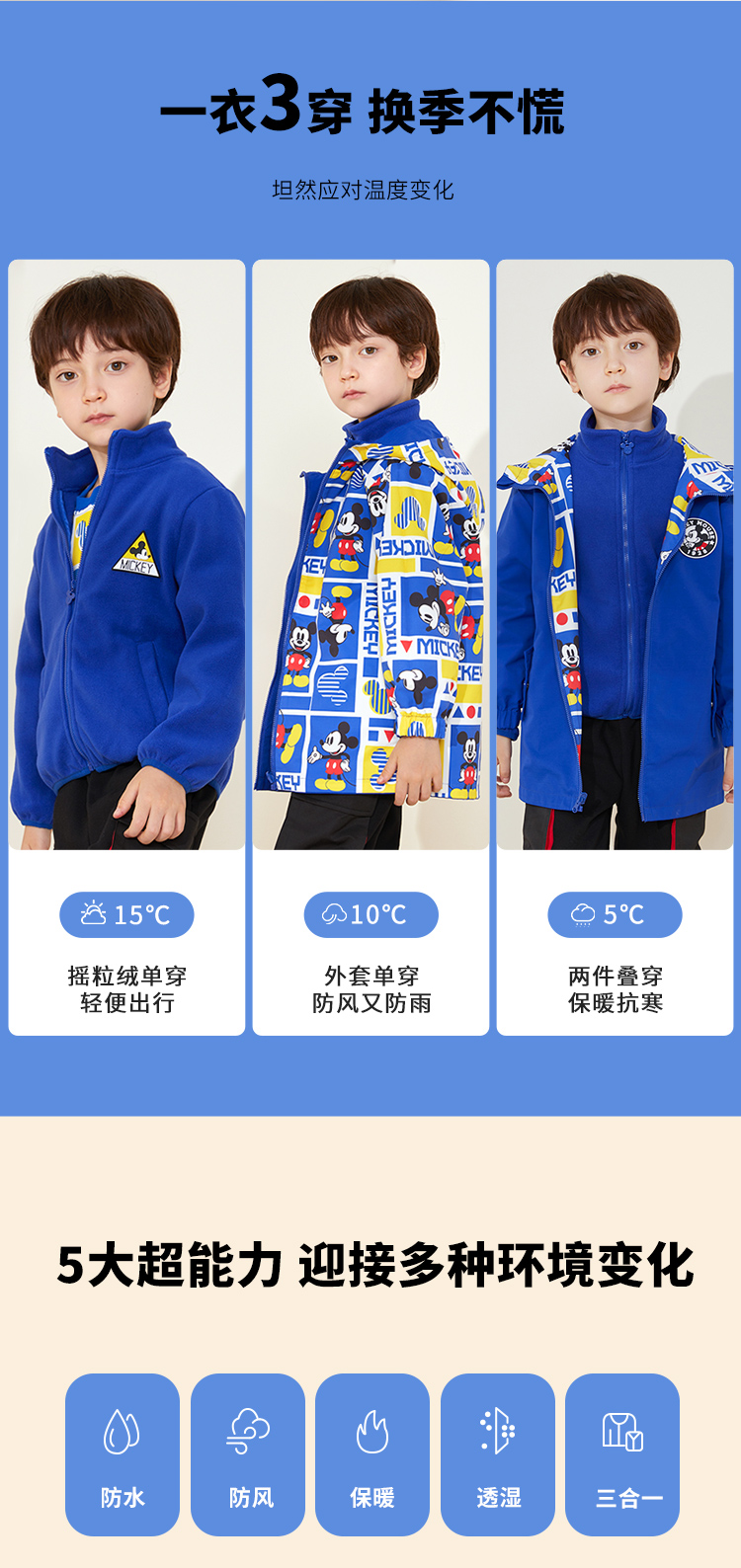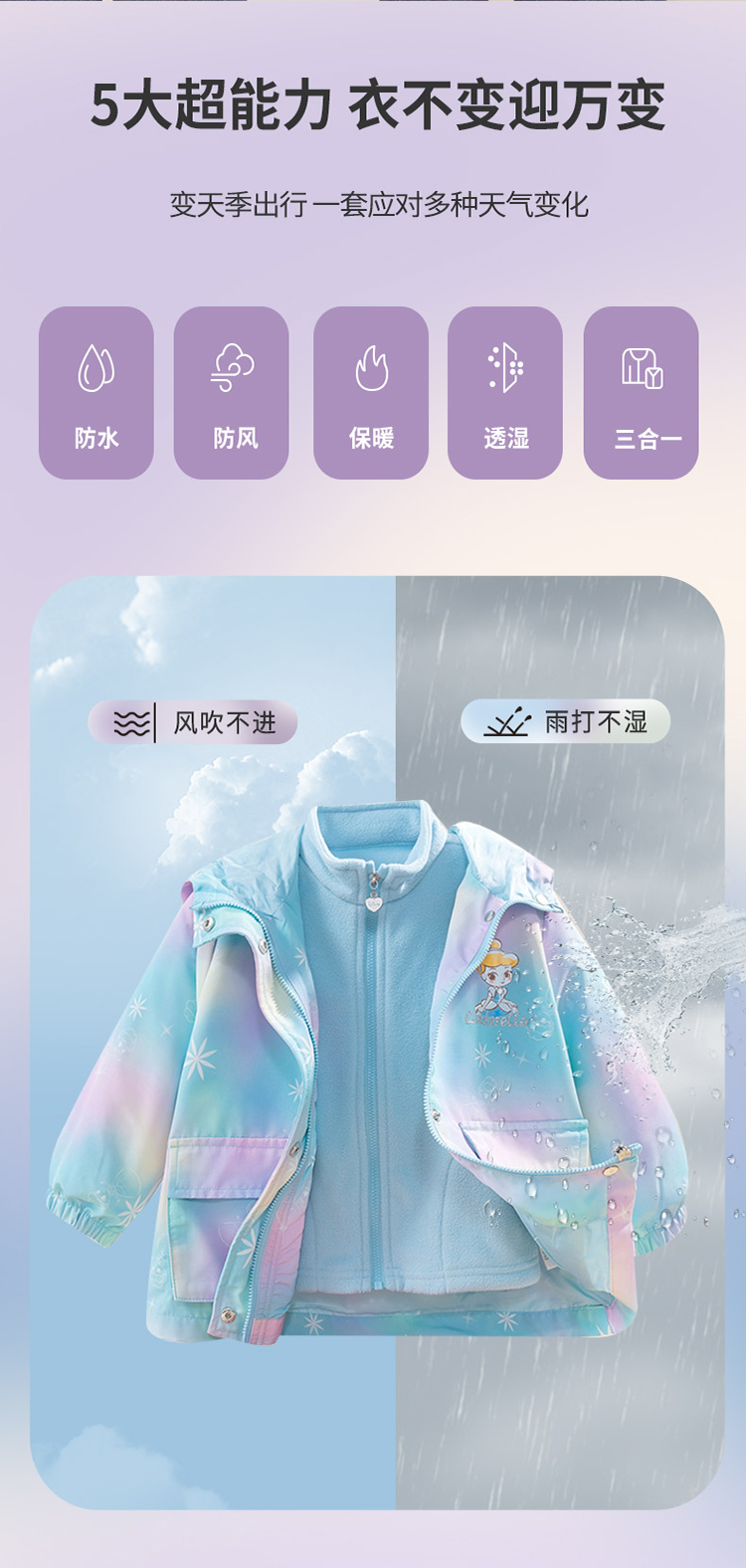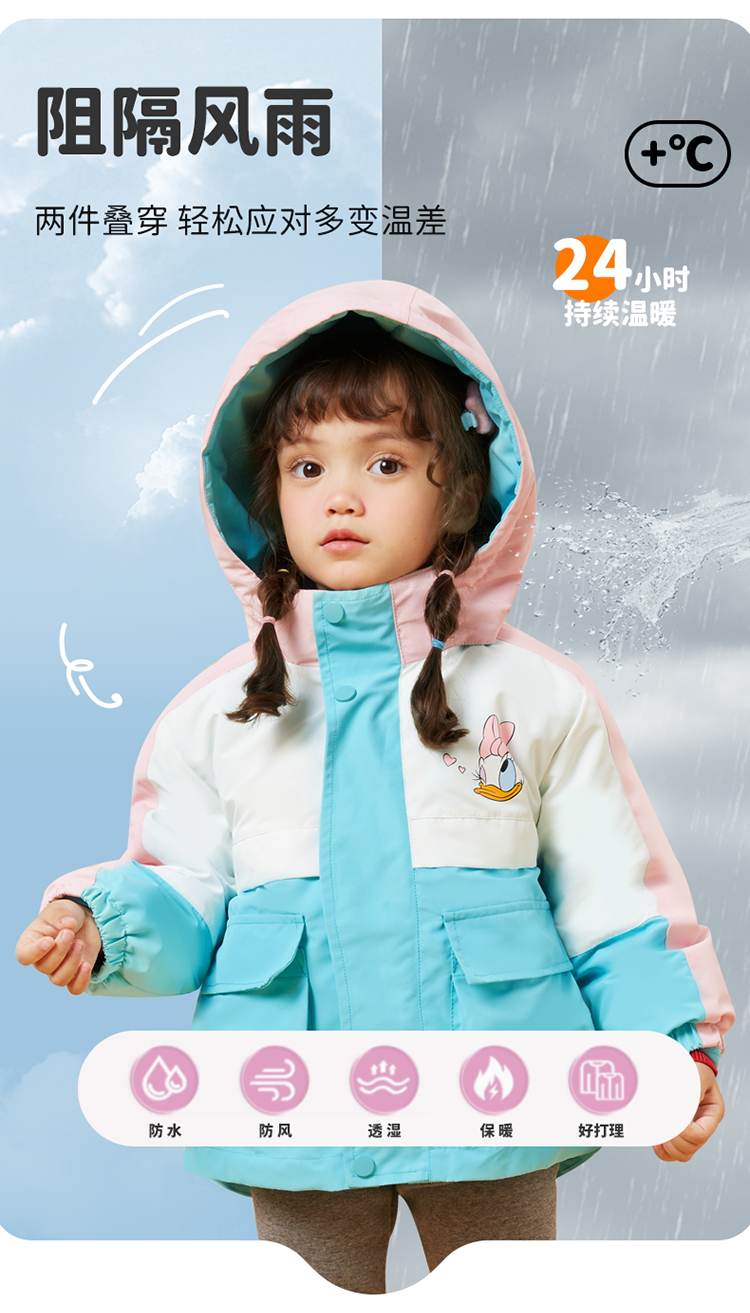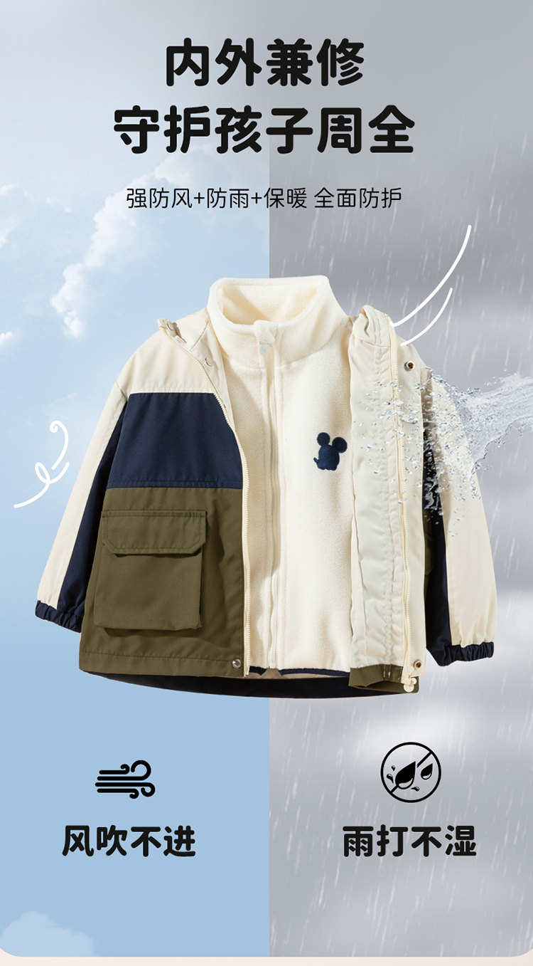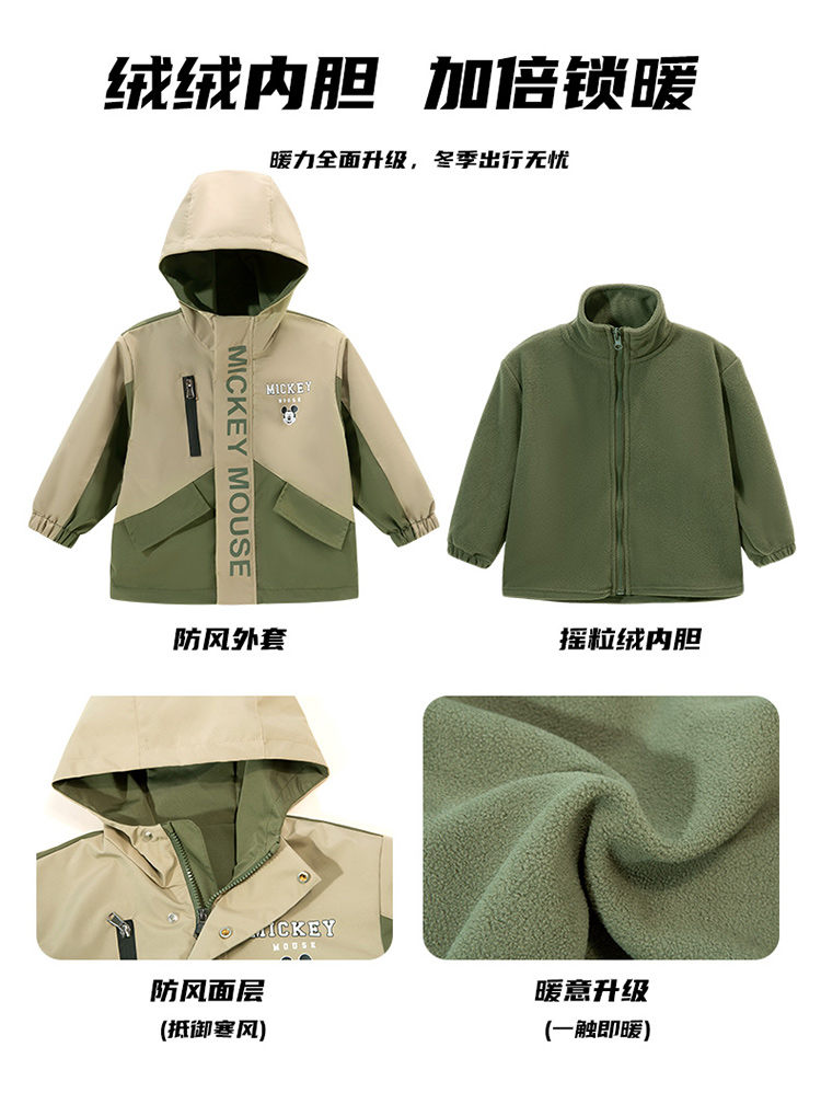【迪士尼Disneybaby正品冲锋衣】男童女童秋冬防风保暖冲锋衣