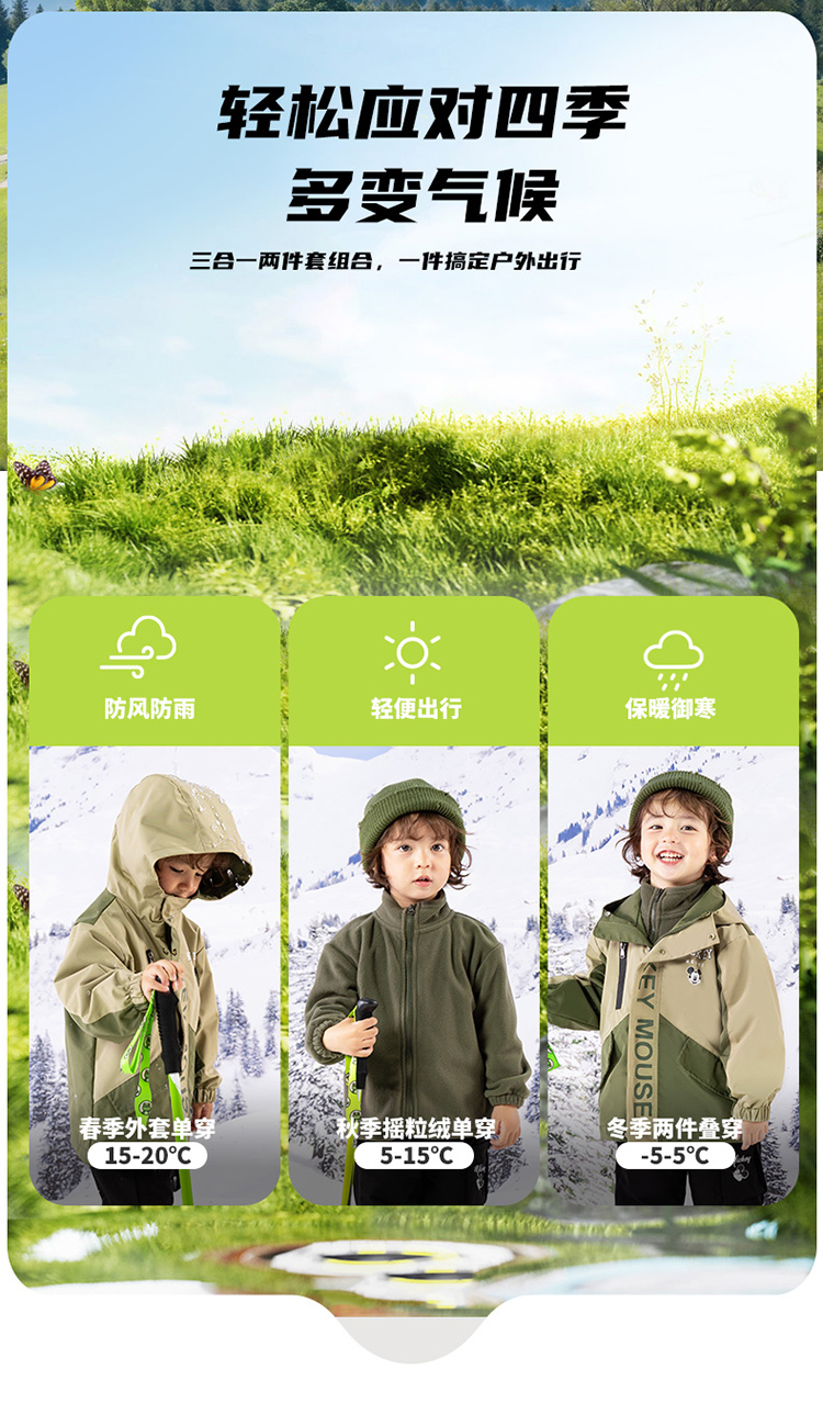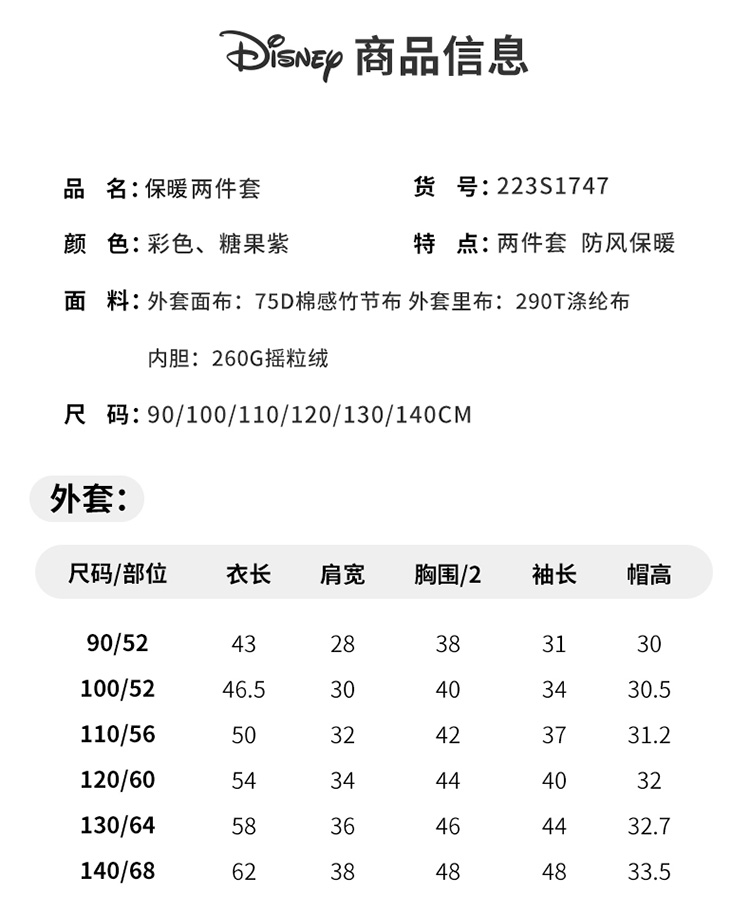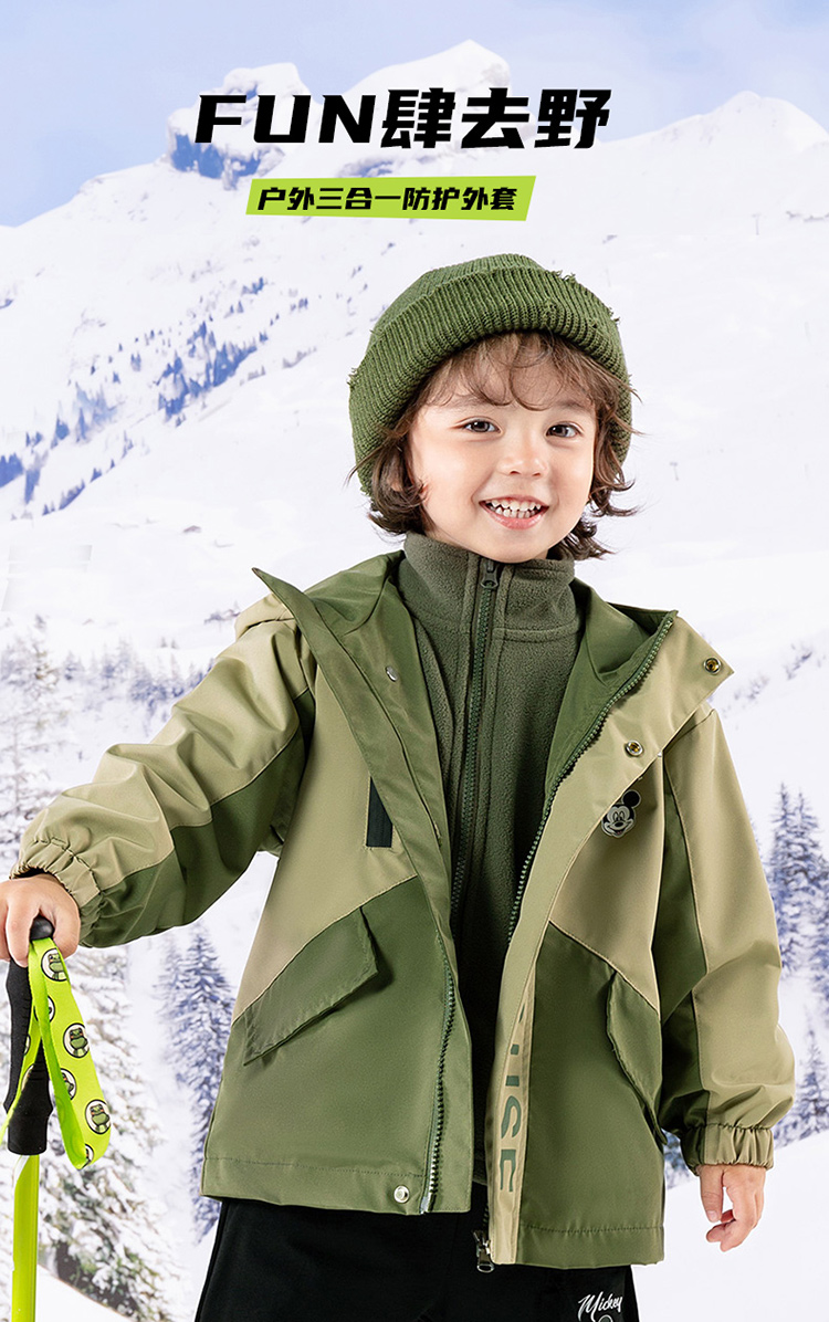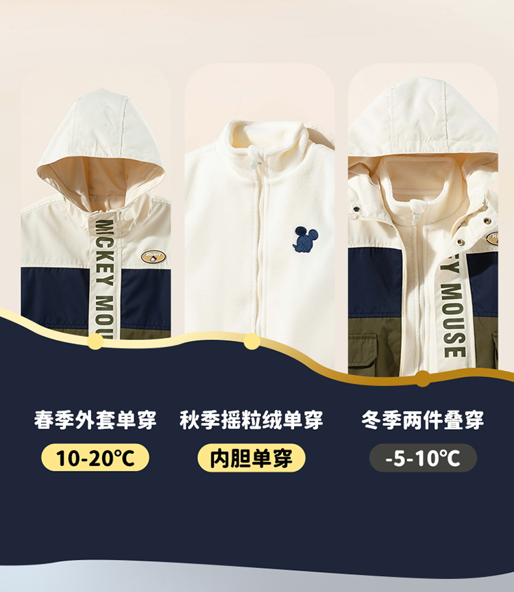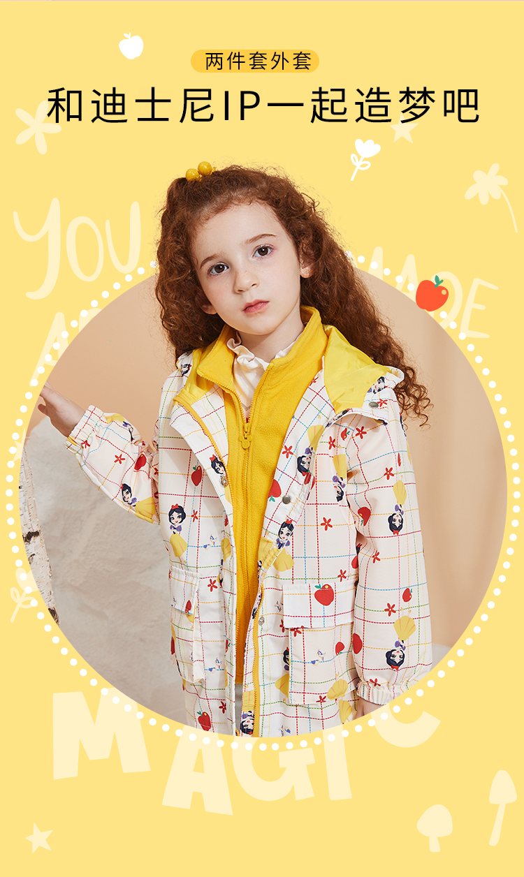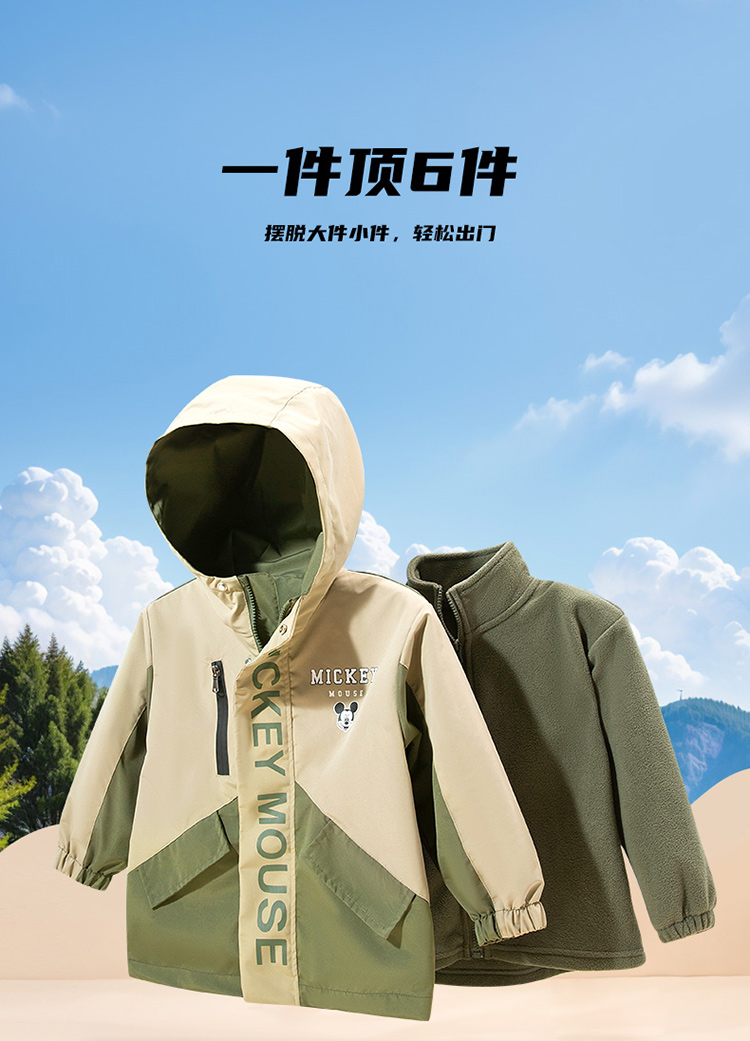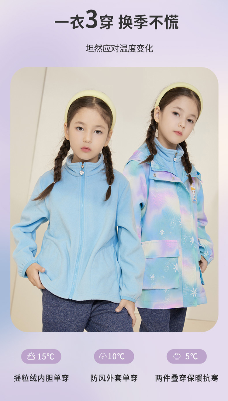 【迪士尼Disneybaby正品冲锋衣】男童女童秋冬防风保暖冲锋衣