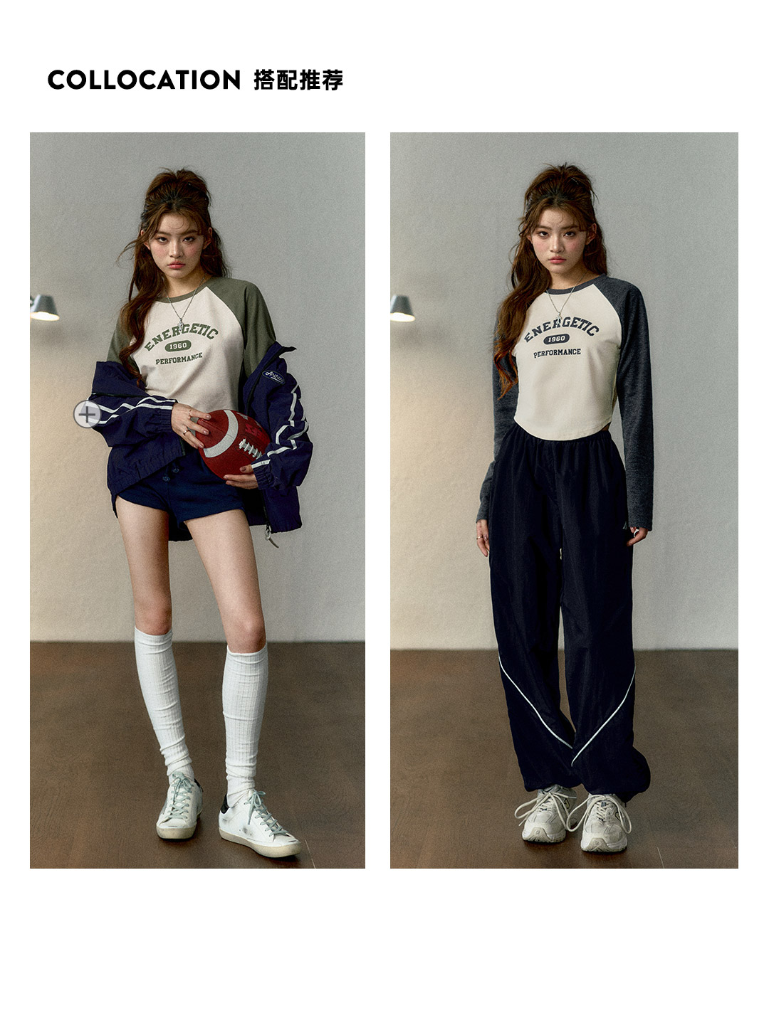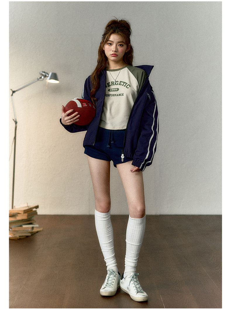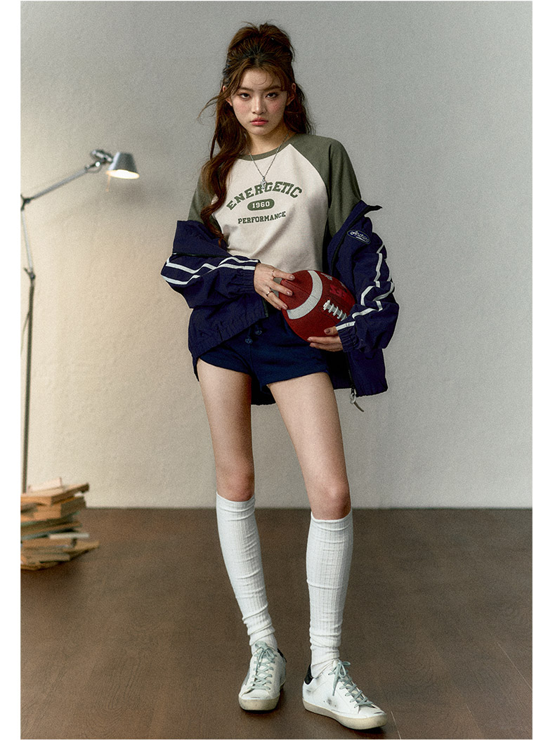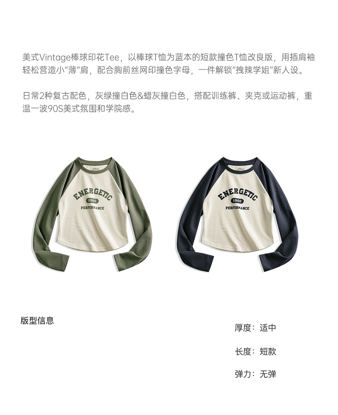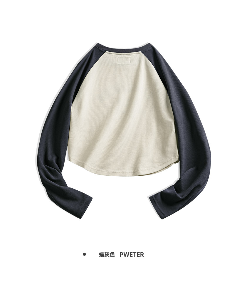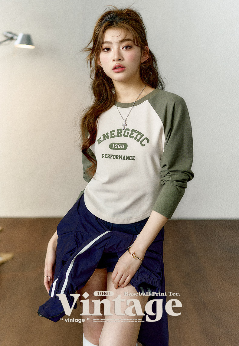 马登女装美式撞色插肩长袖t恤显瘦辣妹短款字母上衣棒球印花T内搭
