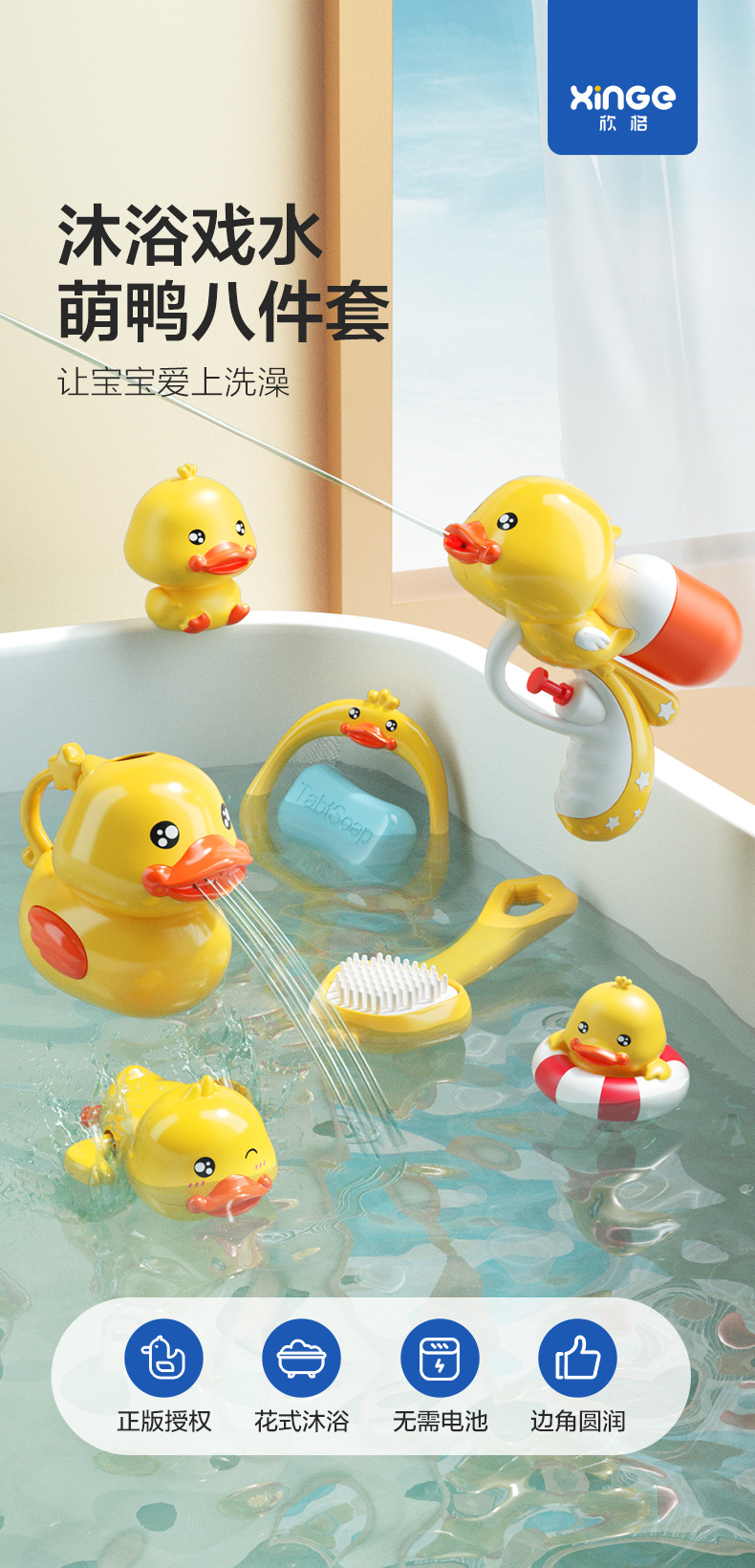 【儿童小黄鸭子 洗澡玩具】浴室喷呲戏水枪花洒 夏季游泳 宝宝婴幼儿玩具