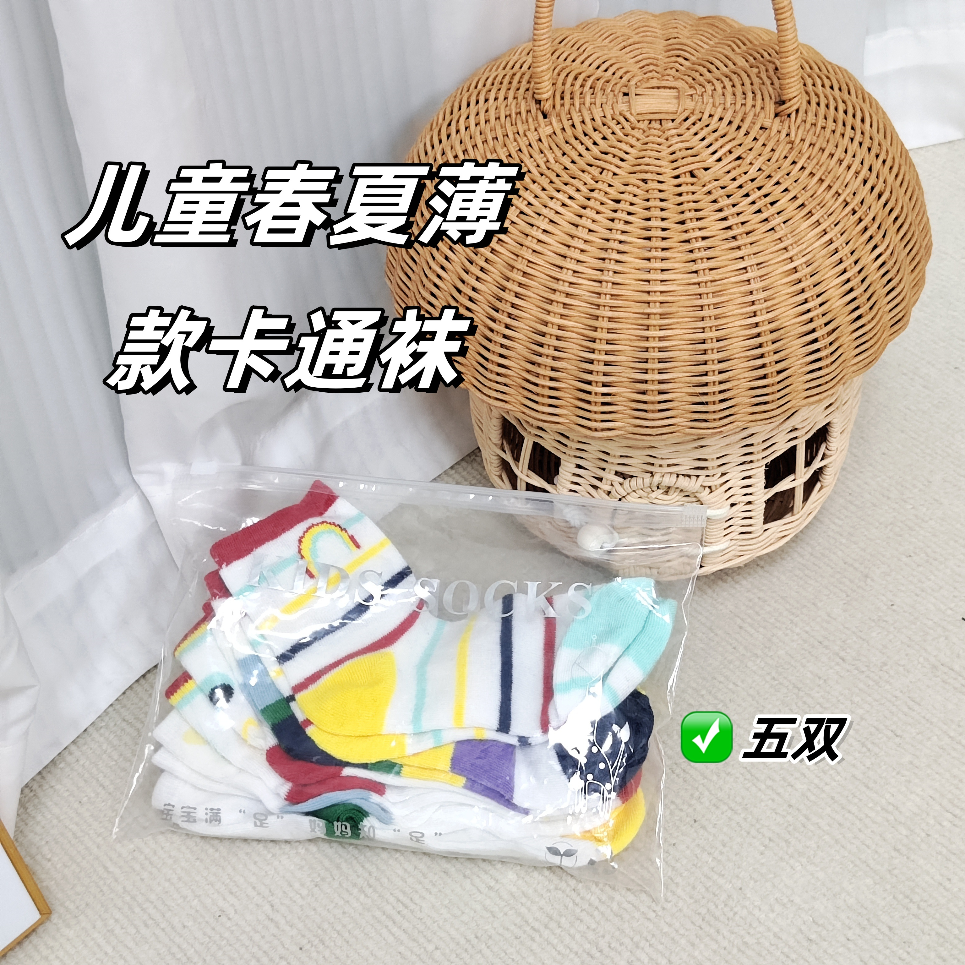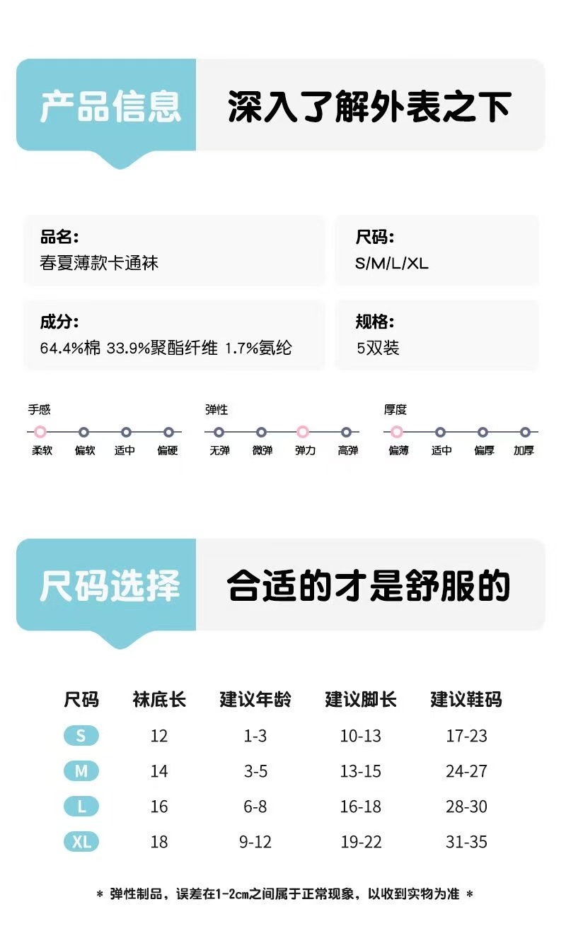 【商品名称】5双儿童春夏薄款卡通袜